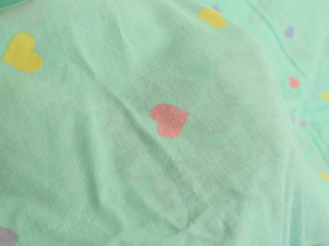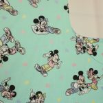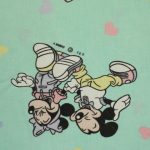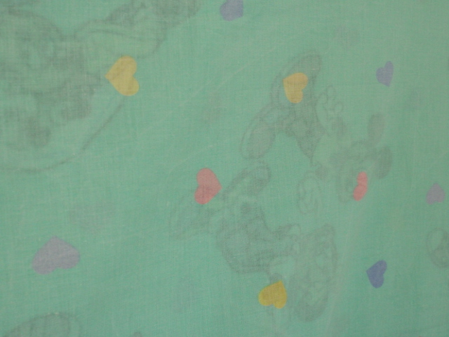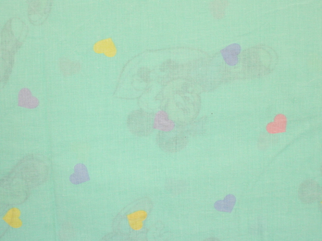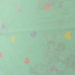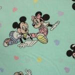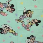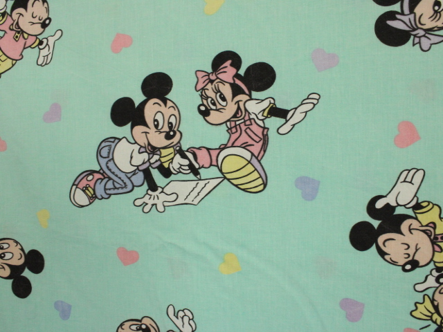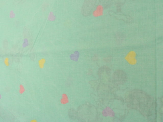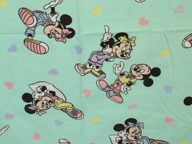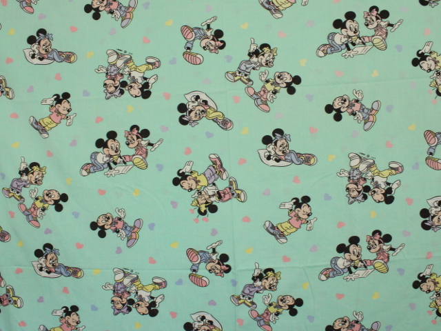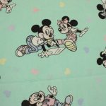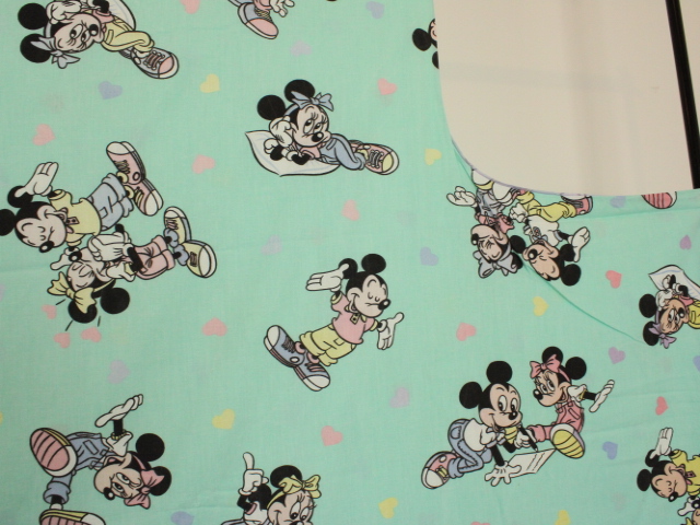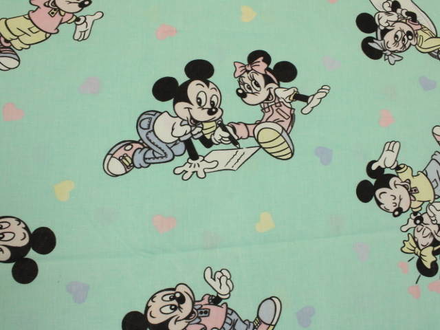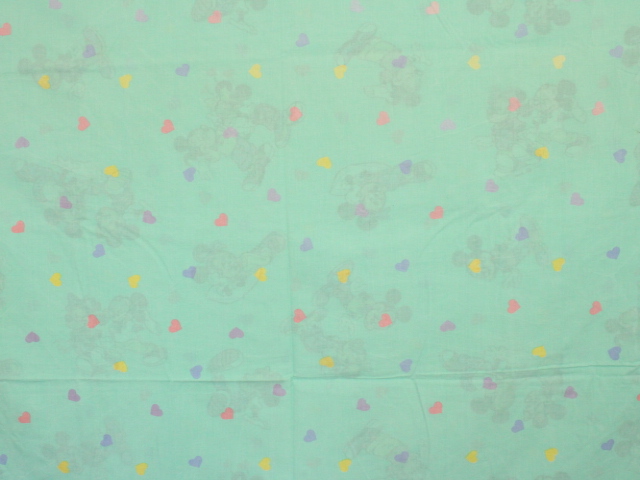 グリーン地にパステルカラーのハートが可愛い、ミッキーとミニーのお布団カバーです。大きなサイズ。裏面はハート柄です。