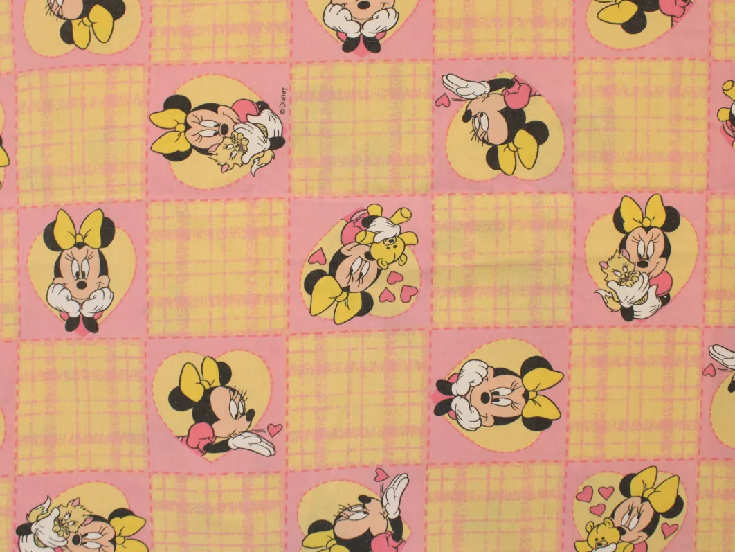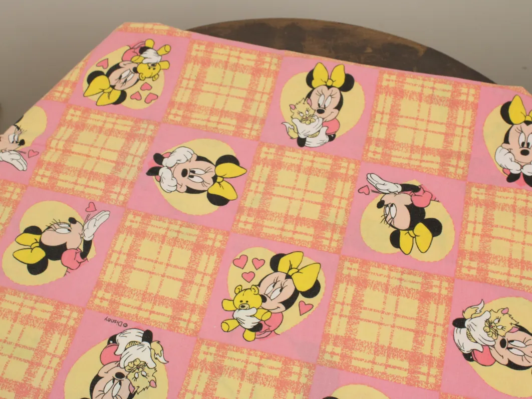 ディズニー、ミニー、キャラクタービンテージシーツ。解体生地。