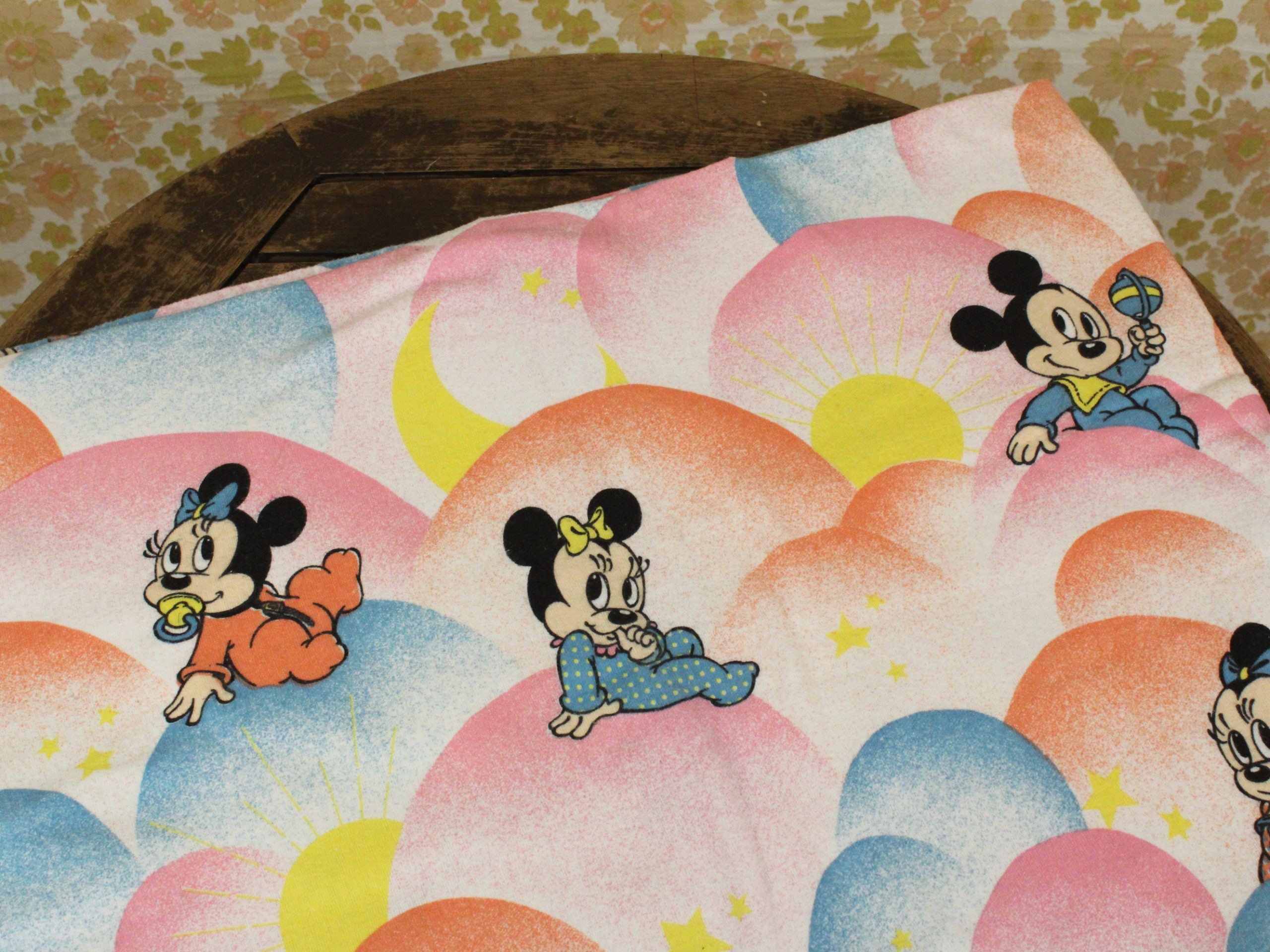 WALT DISNEY PRODUCTIONS、ミッキー、ミニー、キャラクタービンテージシーツ。