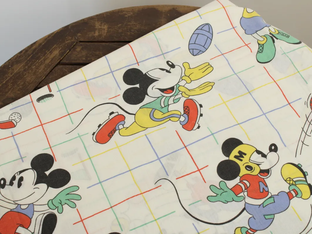 WALT DISNEY PRODUCTIONS、ミッキー、キャラクタービンテージシーツ。解体生地。