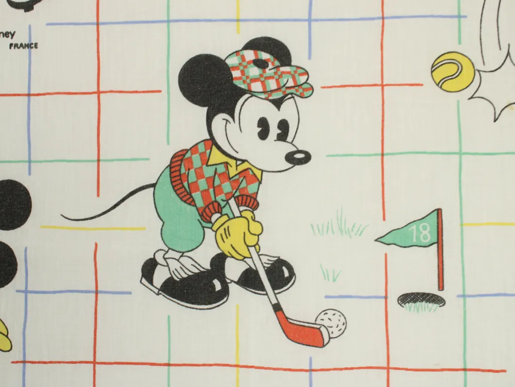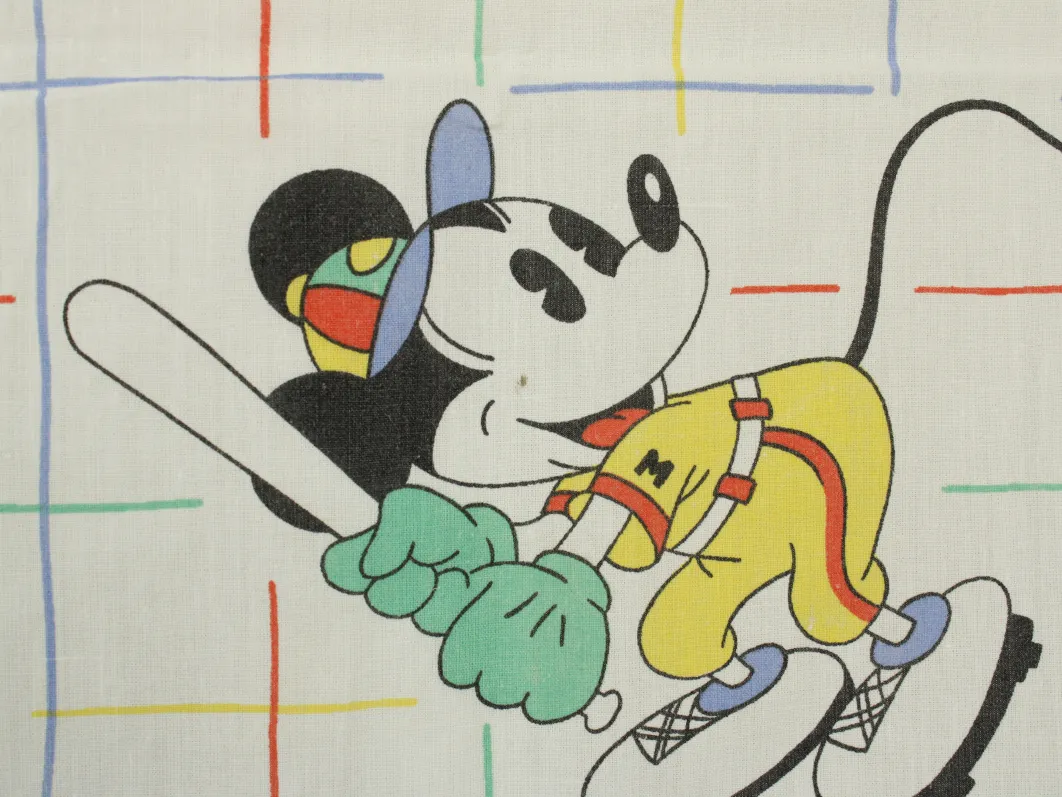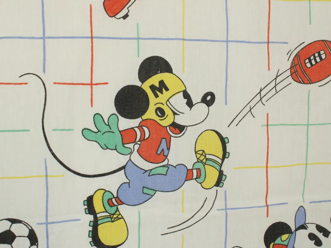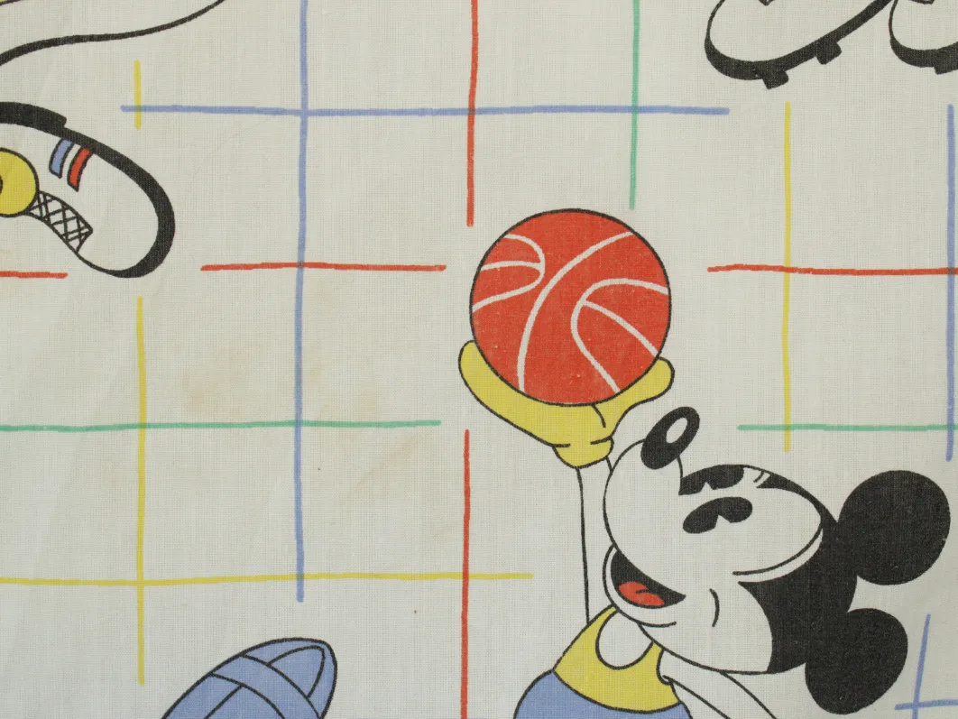 オールドタイプのミッキー、レトロな絵柄が可愛いマルチスポーツ柄。中古シーツ解体生地です。