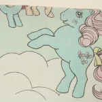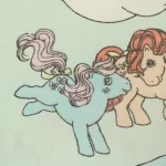 淡い水色地に小柄のポニーたち。