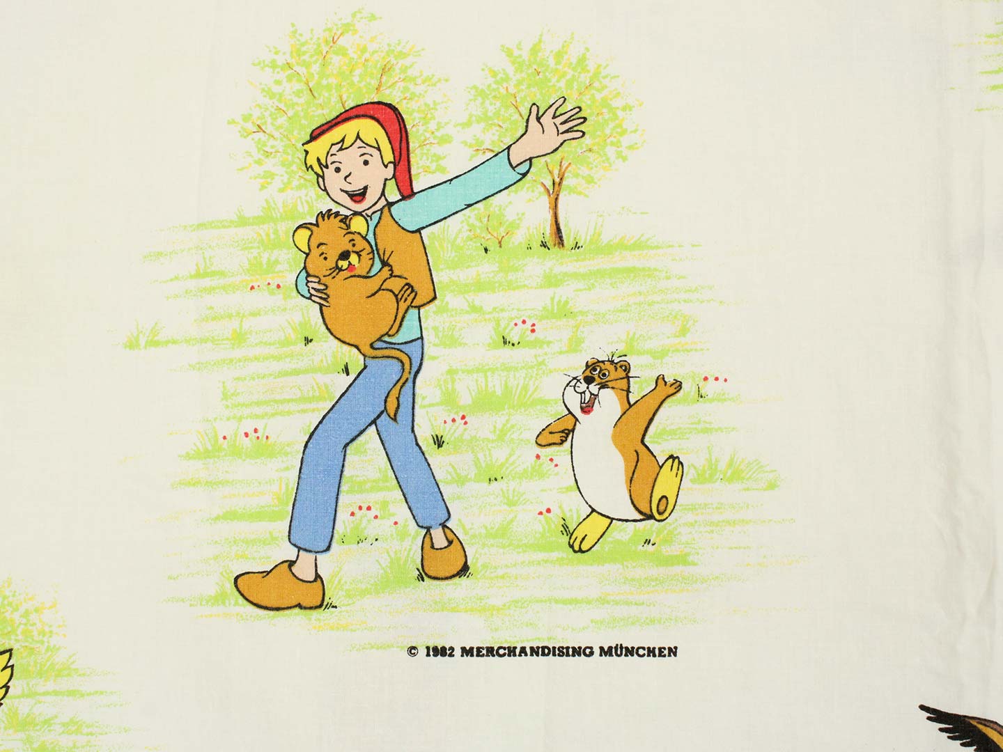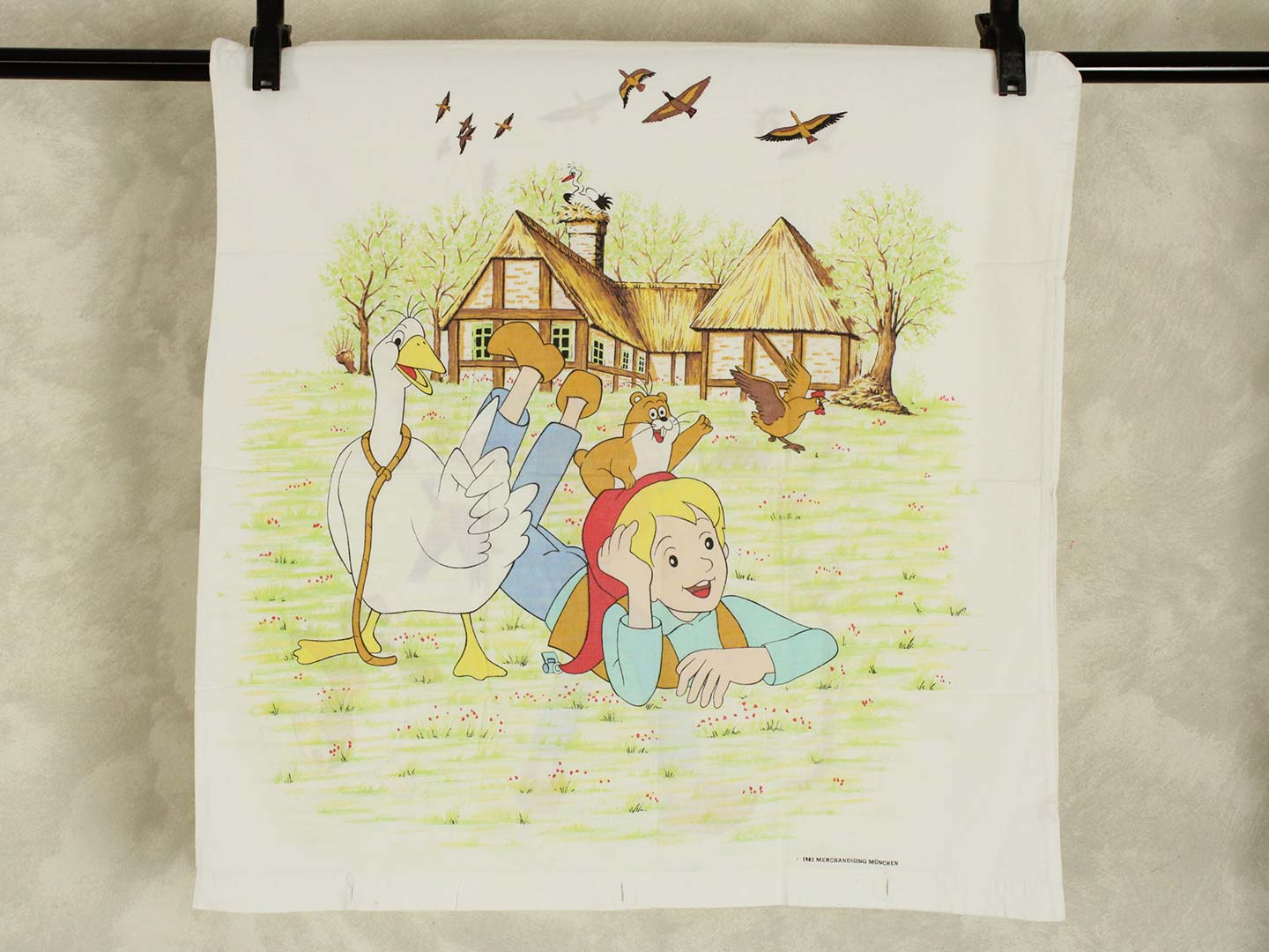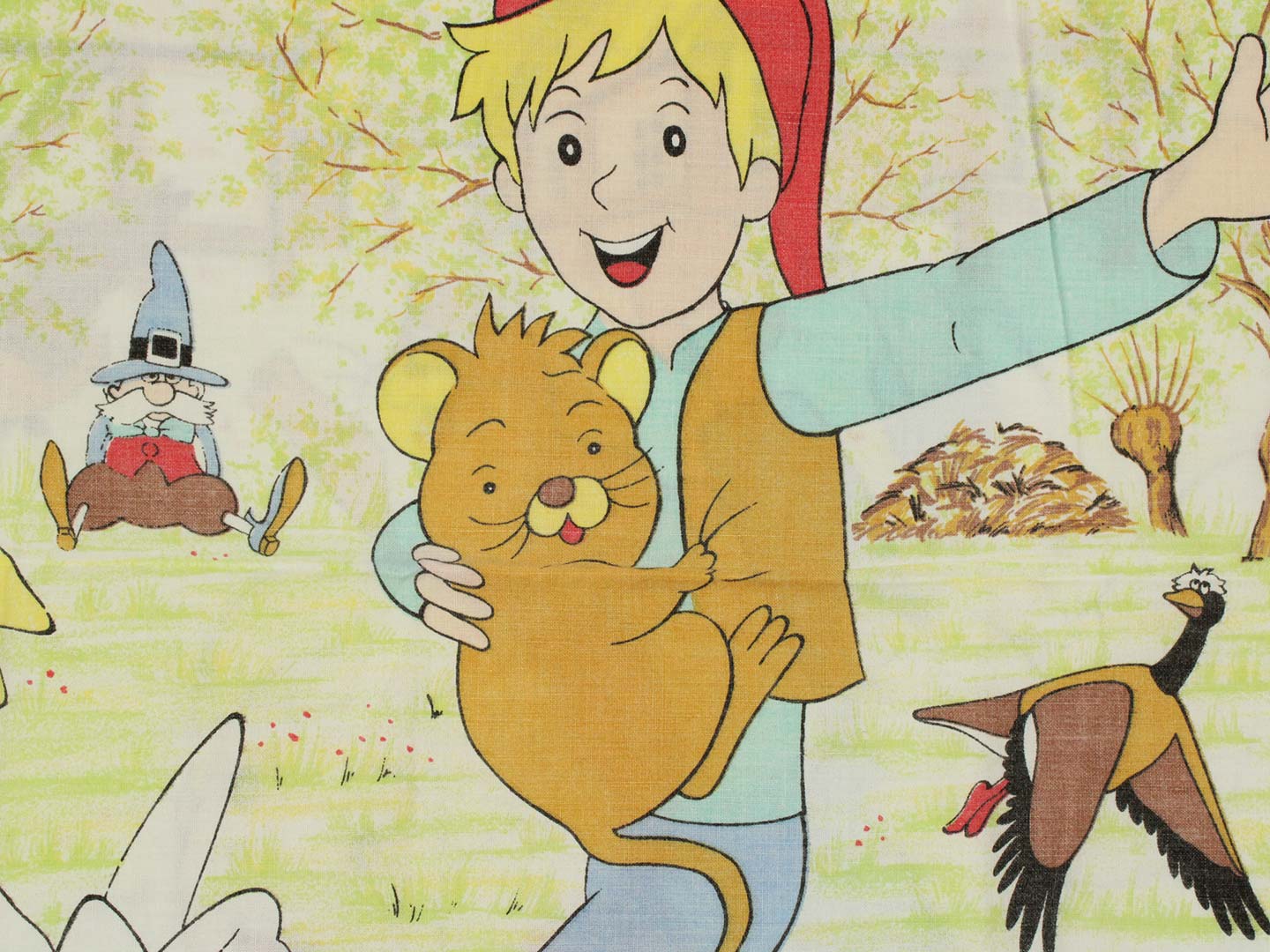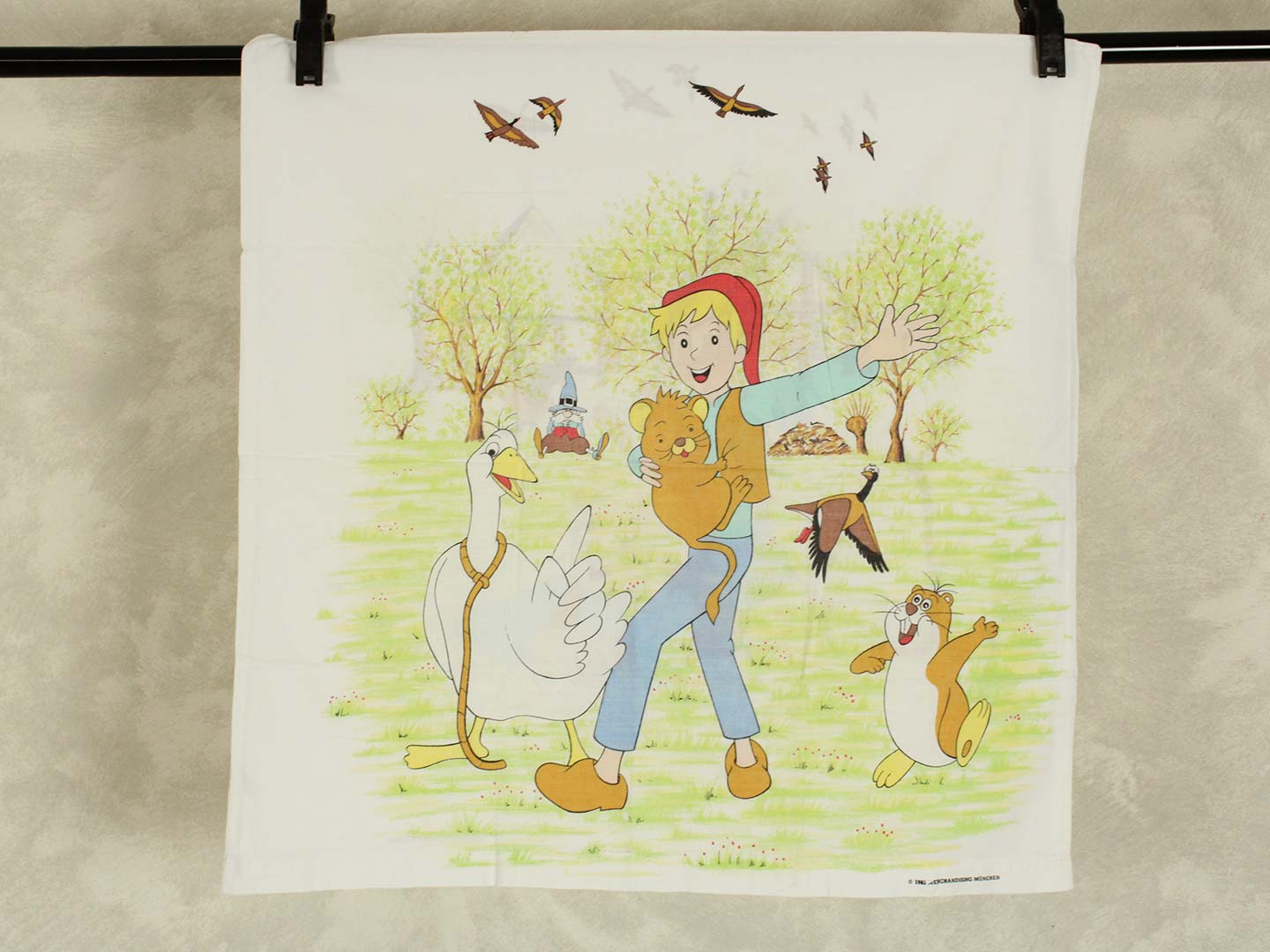 そのアニメ版ニルスのキャラクターや名場面が描かれたお布団カバー&ピローカバーのベッドセットです。お布団カバーは両面同じ絵柄。ピローカバーは別柄です。