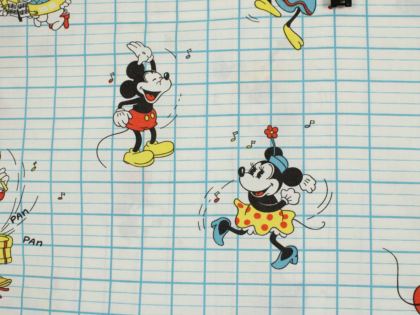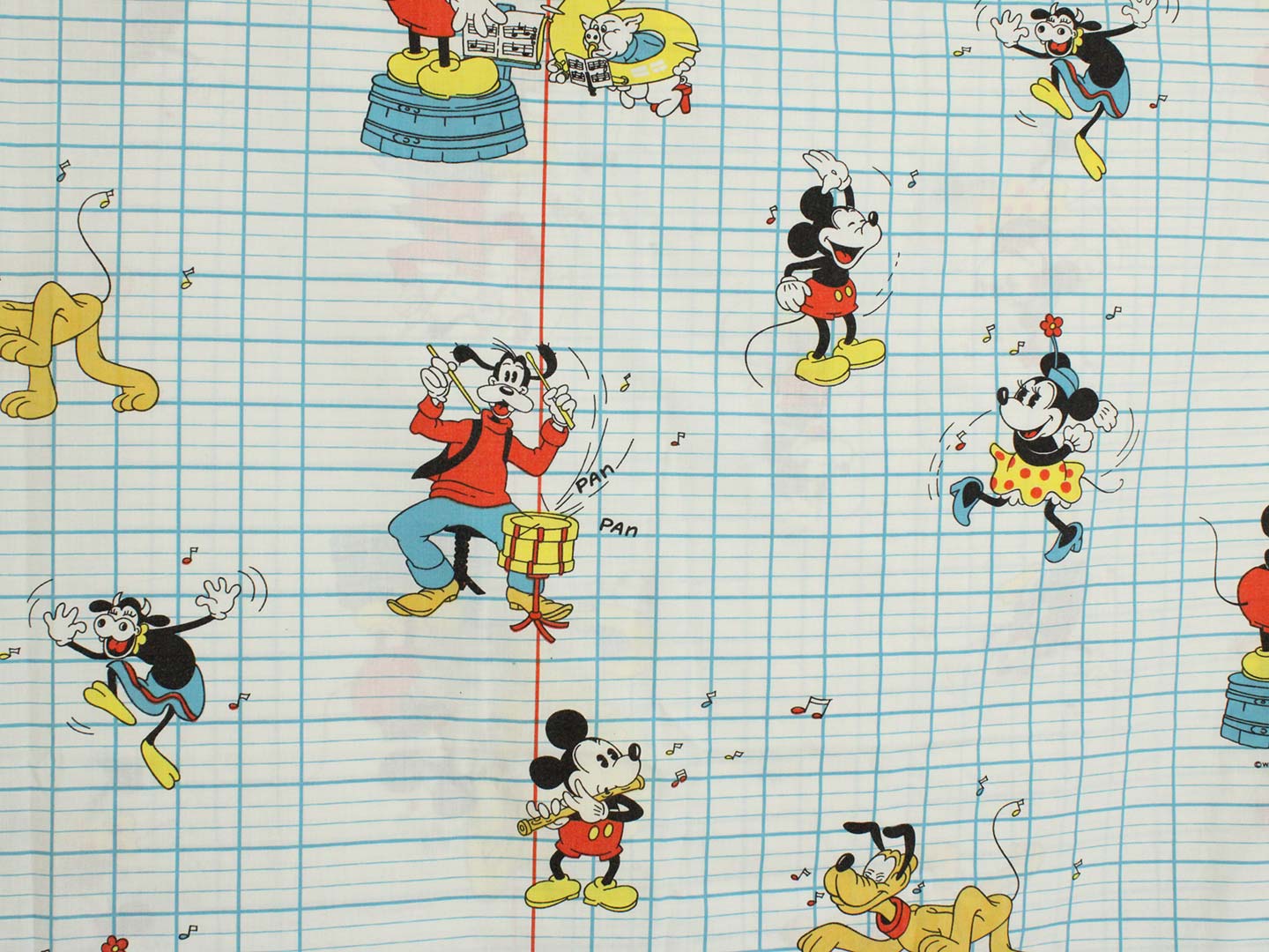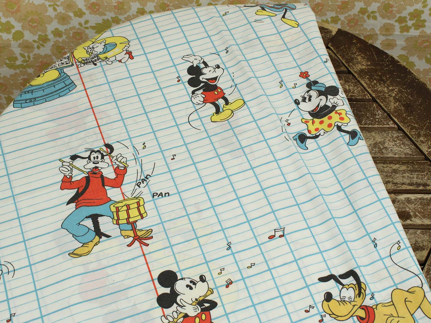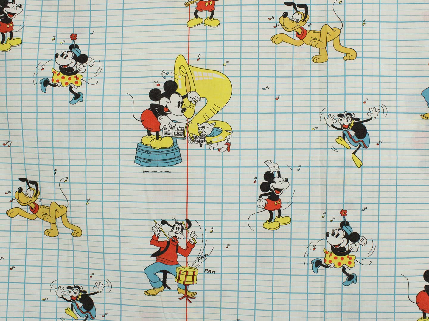 WALT DISNEY PRODUCTION、ミッキーと仲間たち、キャラクタービンテージシーツ。80年代、フランス。