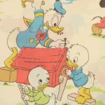 ミッキー、ミニーとドナルド、デイジーや甥っ子たち、お手伝い柄のフラットシーツです。