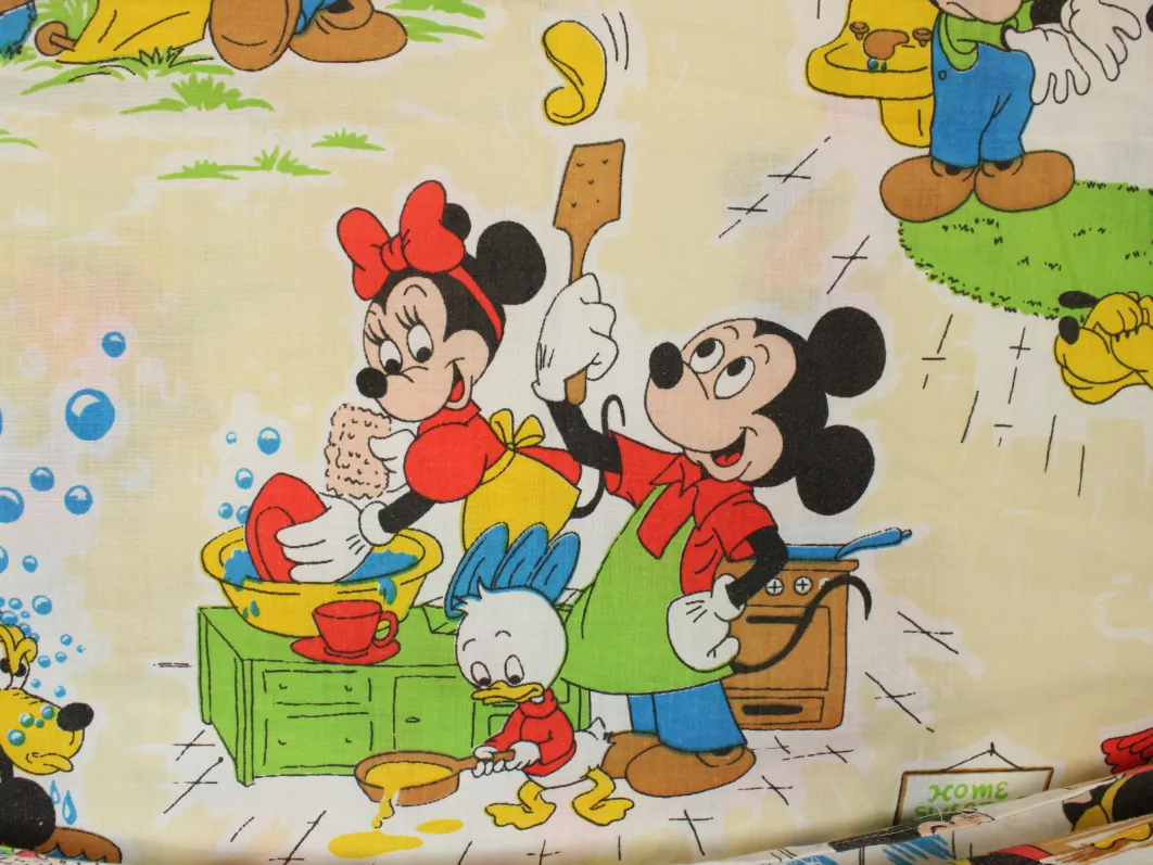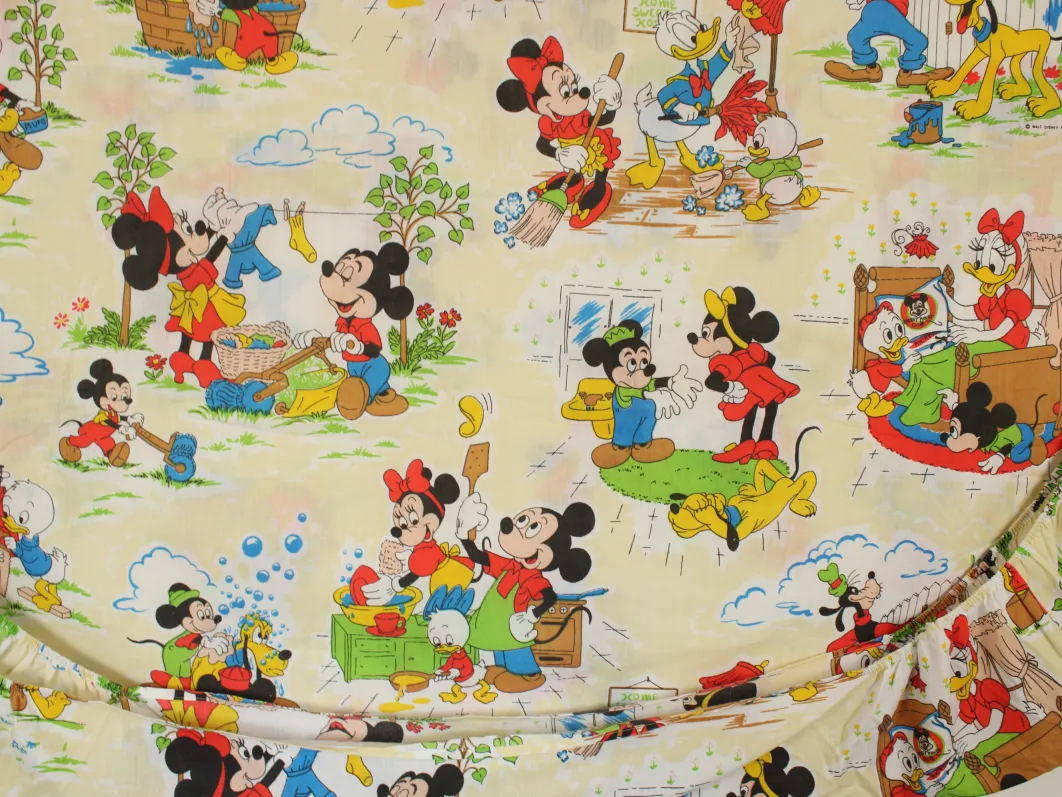 WALT DISNEY PRODUCTIONS、ミッキー&フレンズ、キャラクタービンテージシーツ。