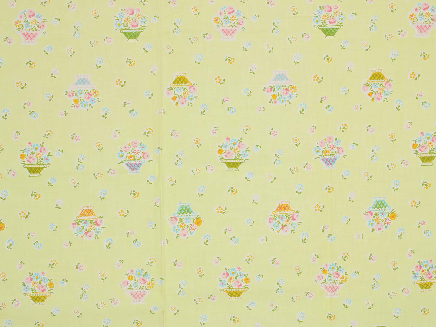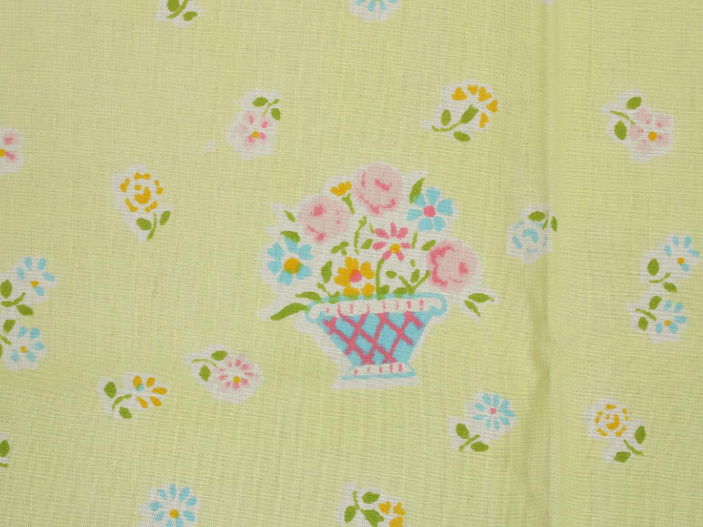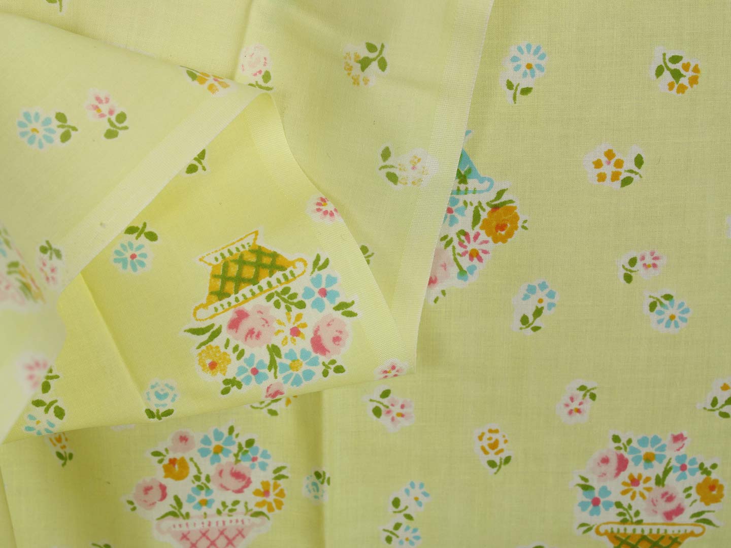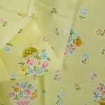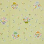 明るいレモンイエロー地に、パステルカラーの小花とパニエ。