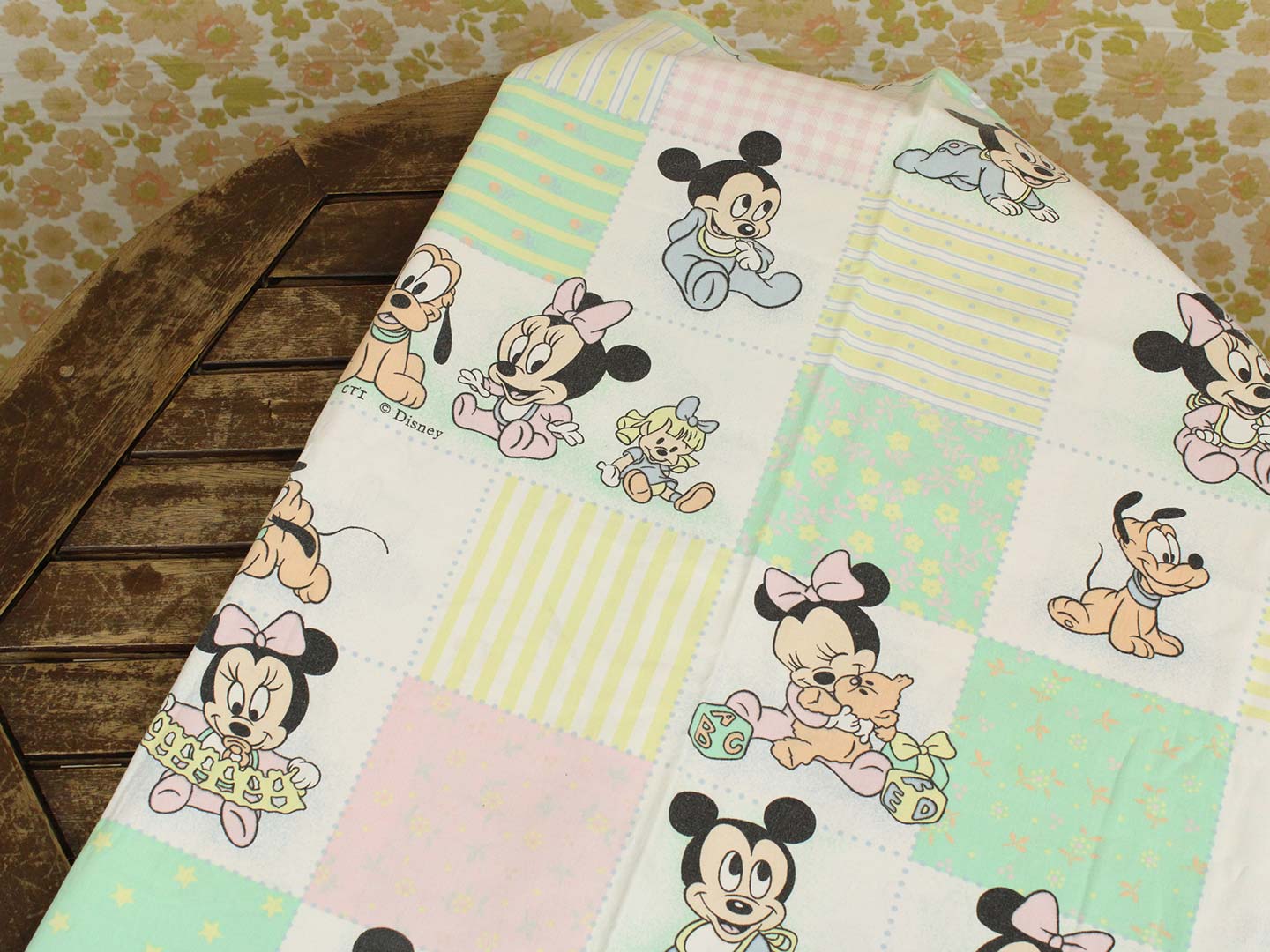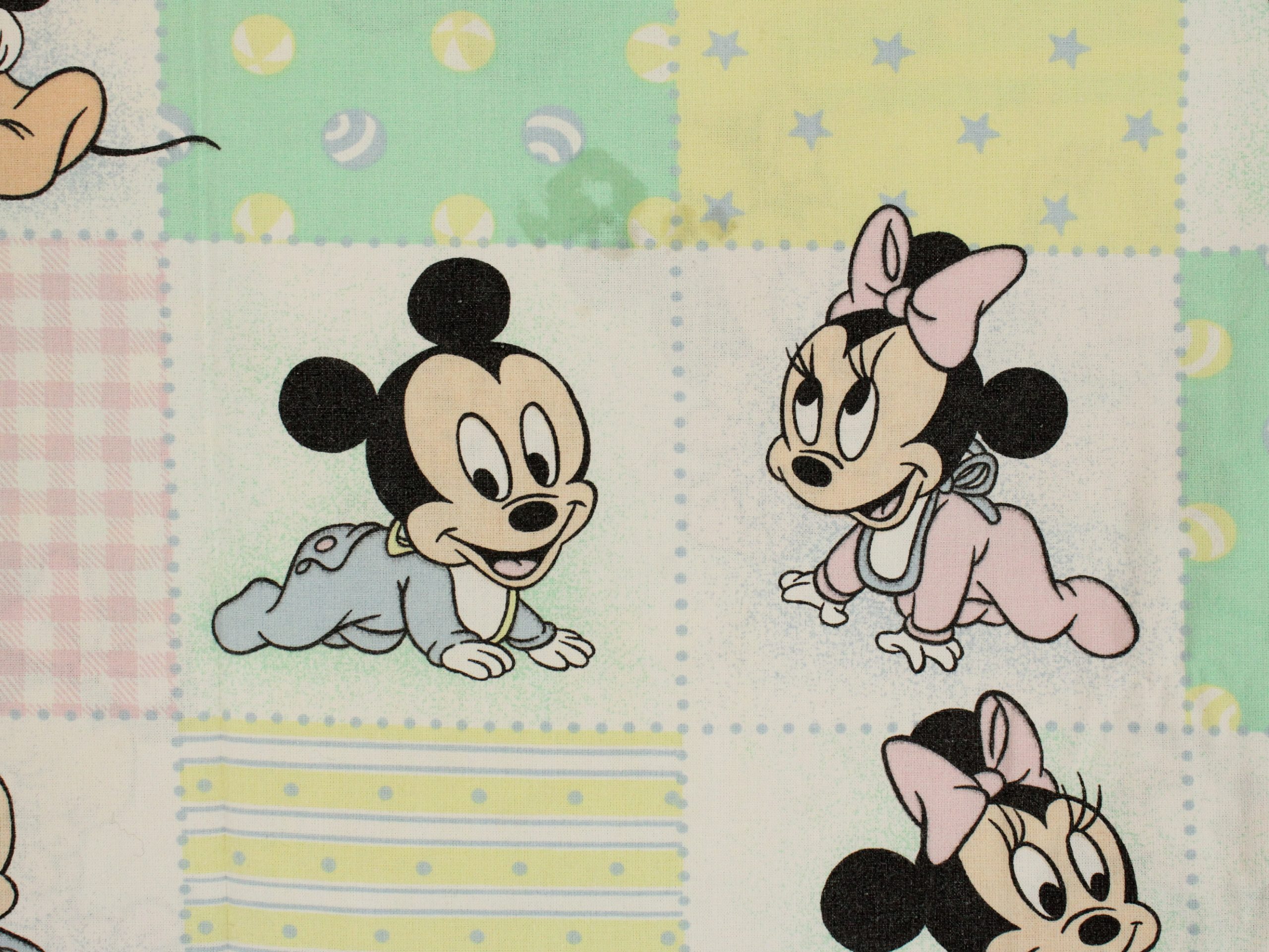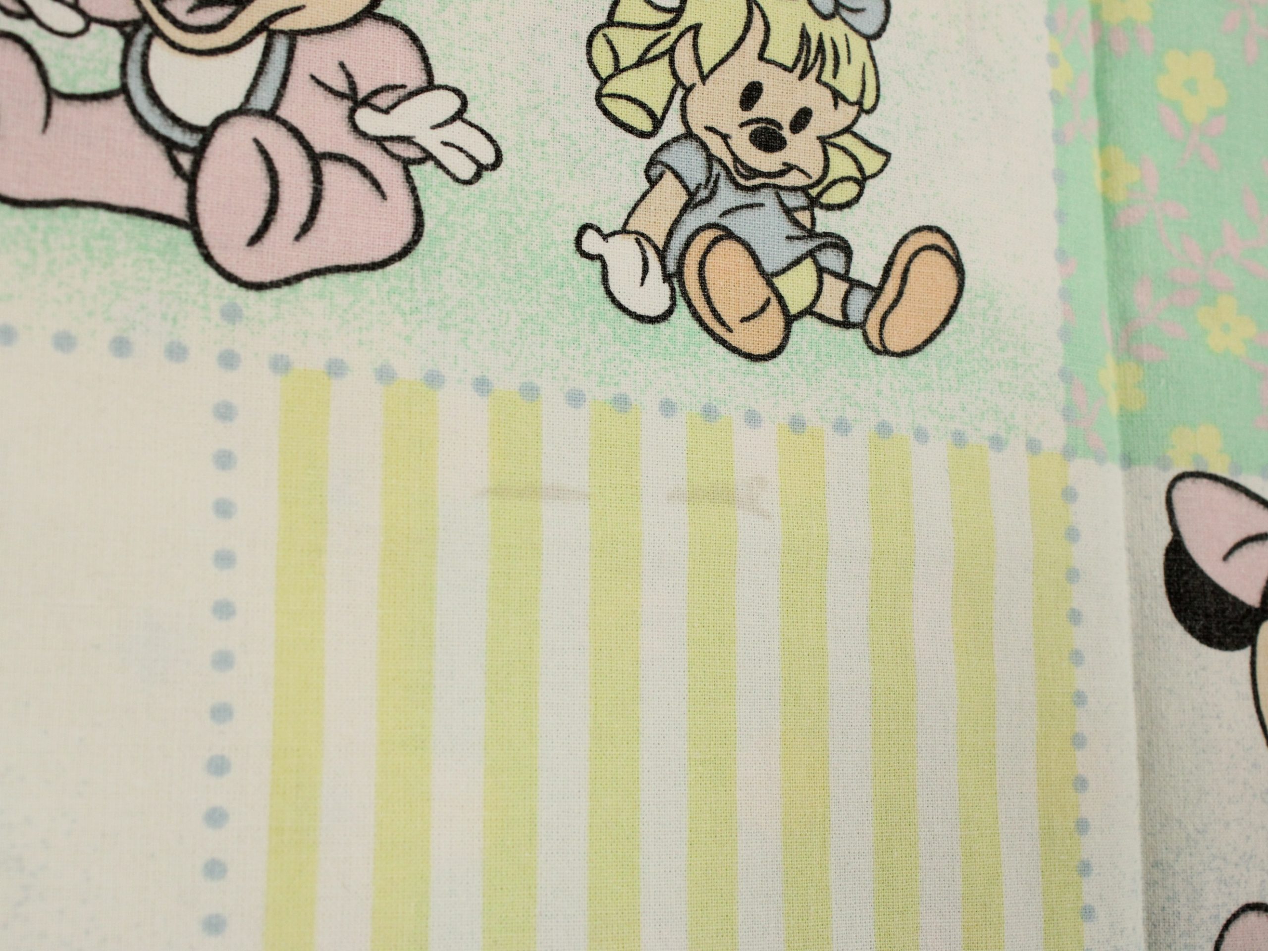 ディズニー、ミッキー、ミニー、キャラクタービンテージシーツ。80年代フランス製。