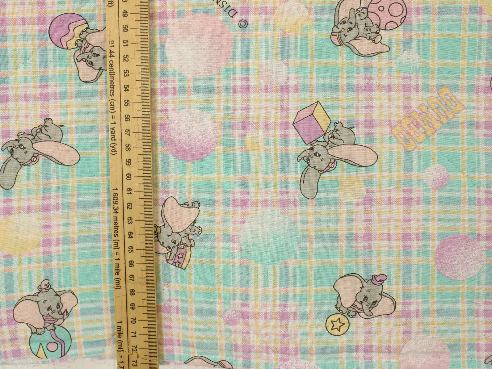 ディズニー、ダンボ、ビンテージシーツ。キルト解体生地。