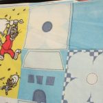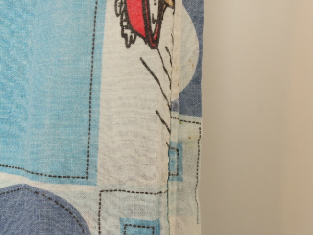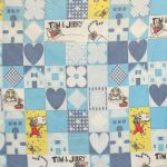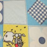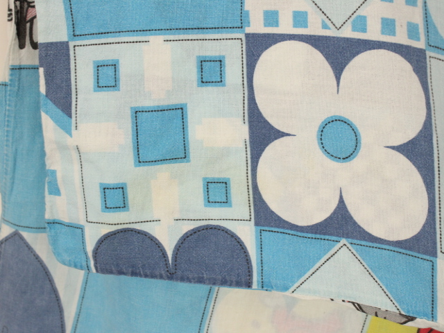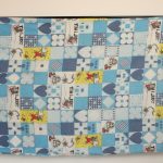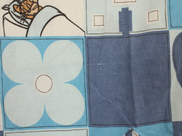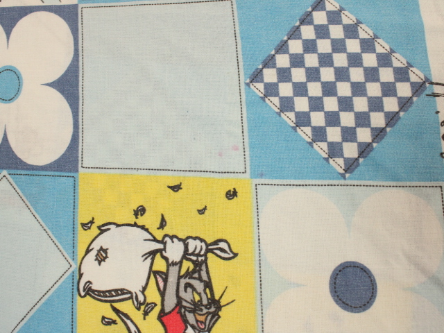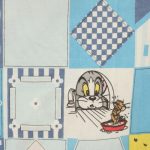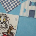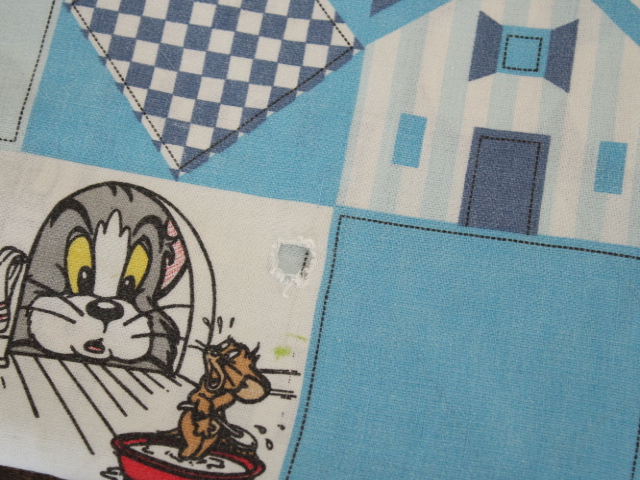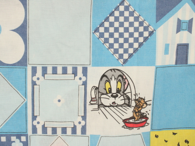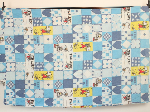 トム&ジェリー、青いパッチワーク柄のお布団カバーです。両面同じ絵柄です。やや目の粗いコットン製です。