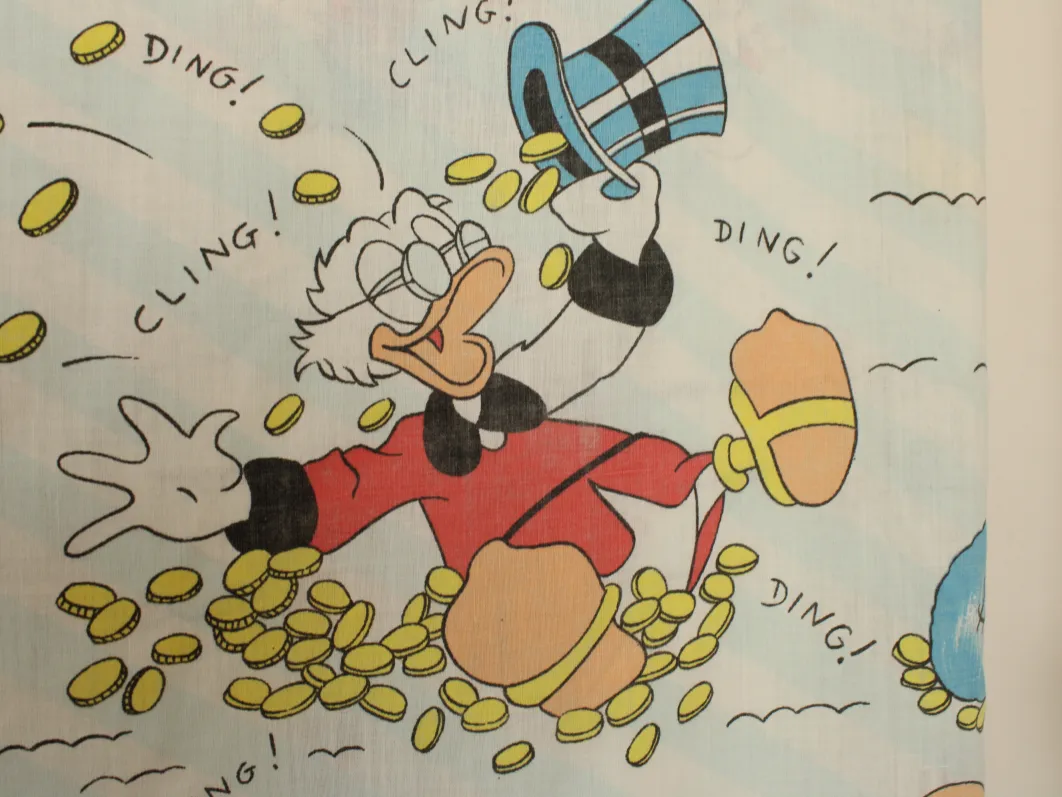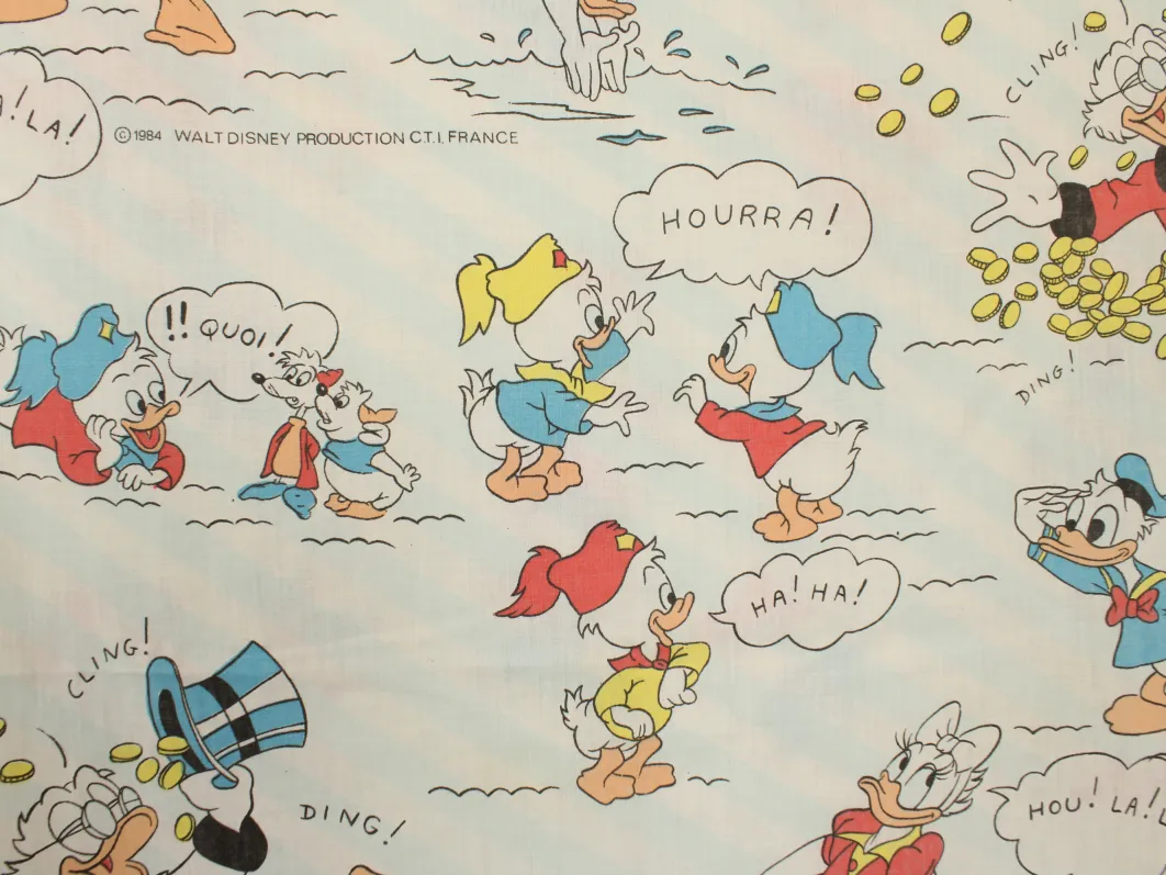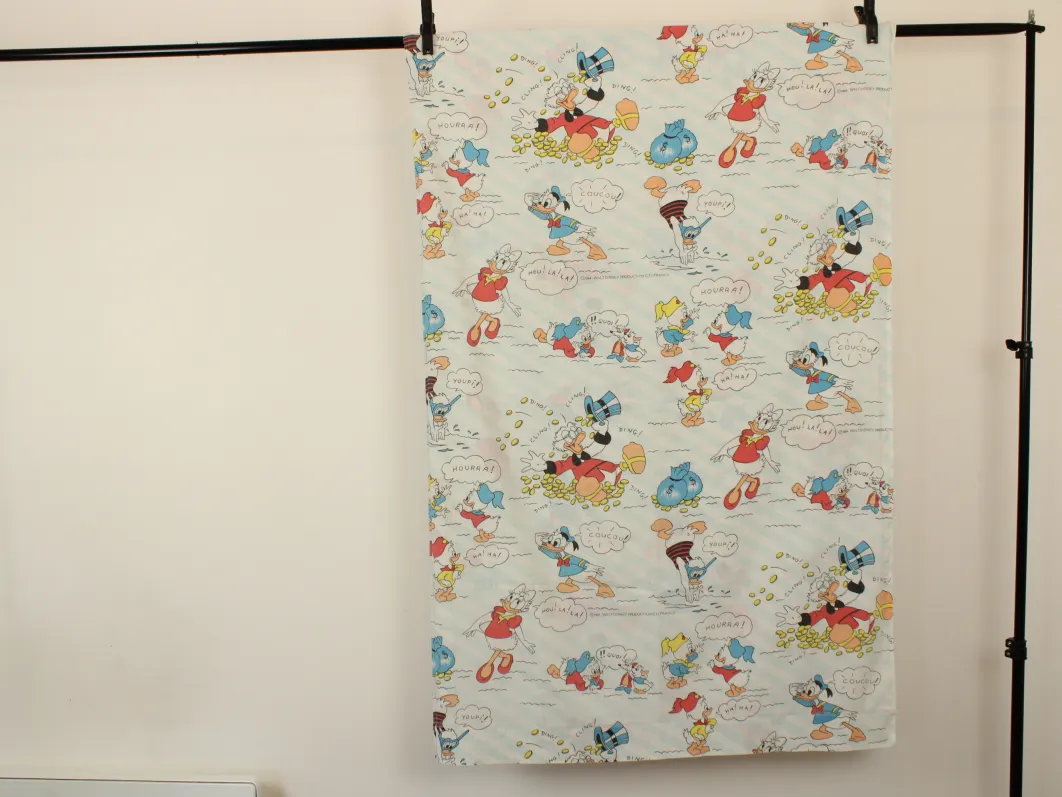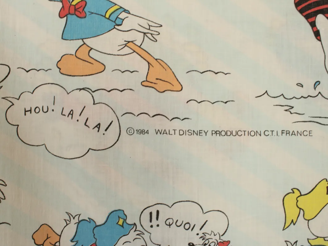 WALT DISNEY PRODUCTIONS、ダックファミリー、キャラクタービンテージシーツ。解体生地。