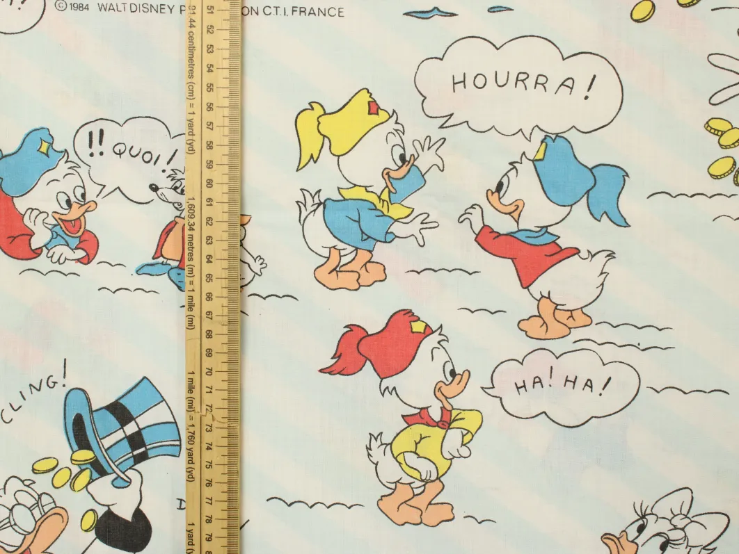 ドナルド、デイジー、甥っ子たちやスクルージのストライプ柄。中古シーツ解体生地です。