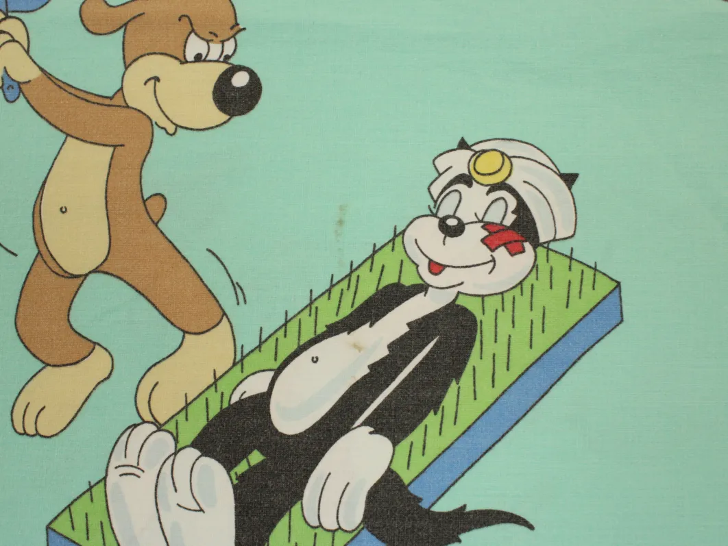 80年代フランスアニメ、Pif et Hercule。中古シーツ解体生地です。
