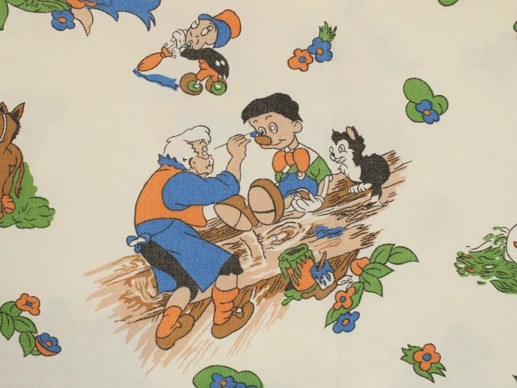 ディズニー、ピノキオ、キャラクタービンテージシーツ。解体生地