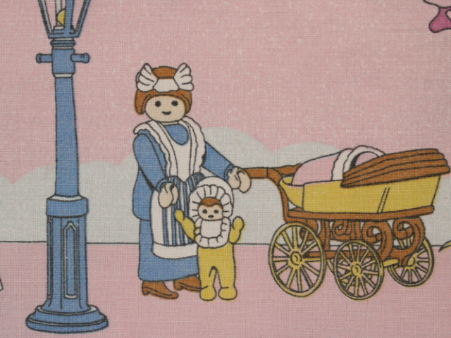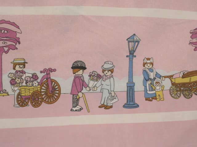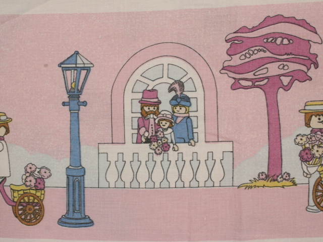 世界的に人気のあるドイツ、ゲオブラ・ブランドシュテーター社の組み立て玩具「プレイモービル(Playmobile)」のビンテージシーツです。80〜90年代。