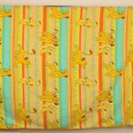 オレンジ色のストライプを背景に、子どもシンバとナラがデザインされているお布団カバーです。お布団カバーは裏表別柄です。