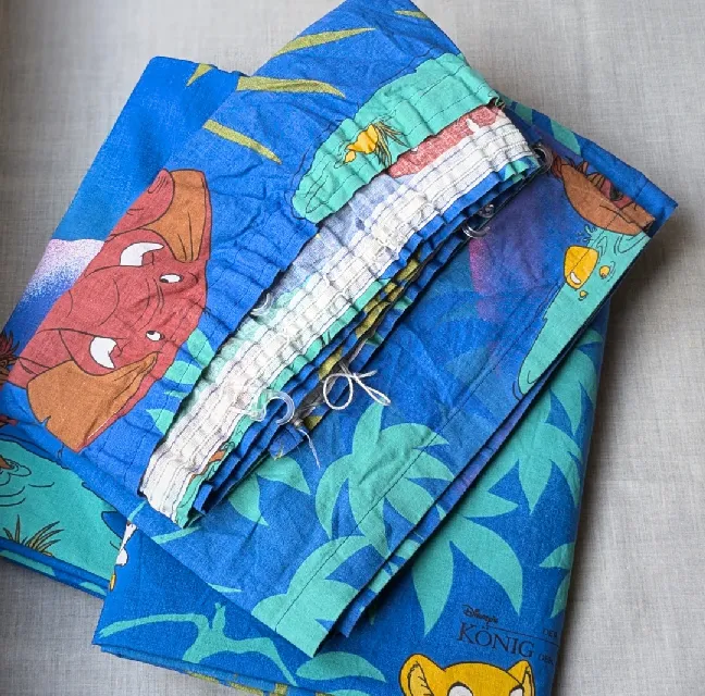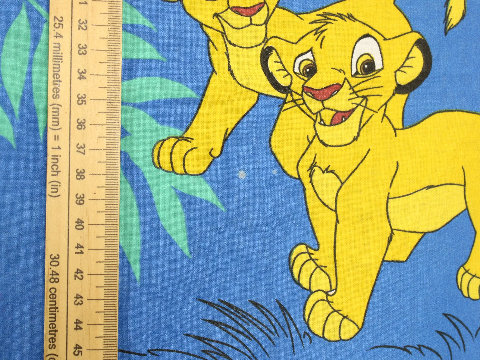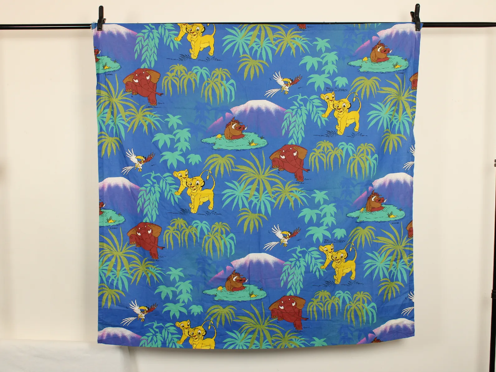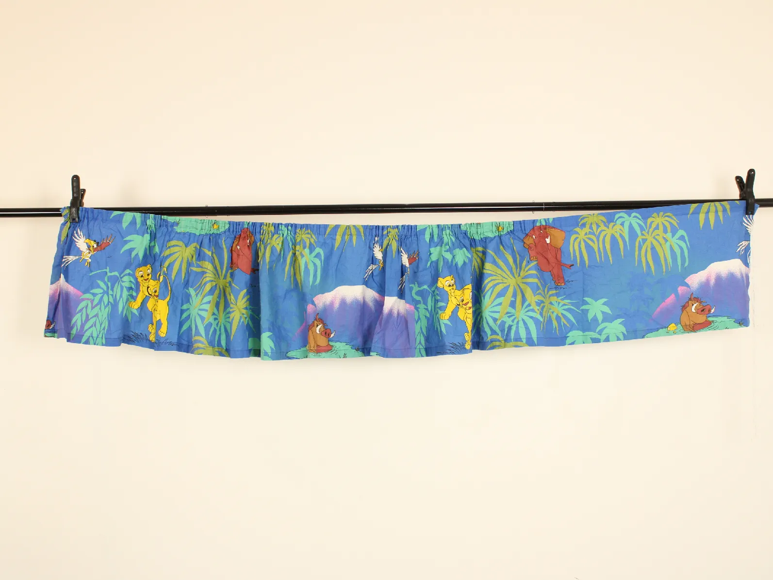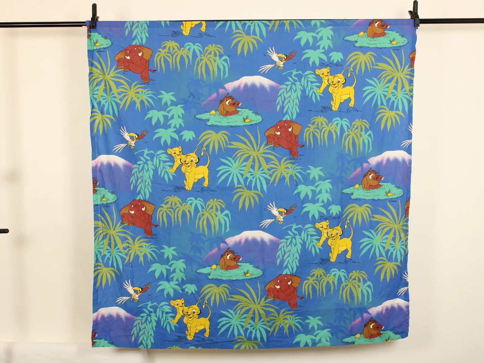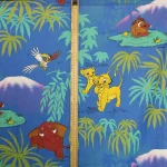 青地に子供シンバ&ナラ、動物達の絵柄のカーテンです。