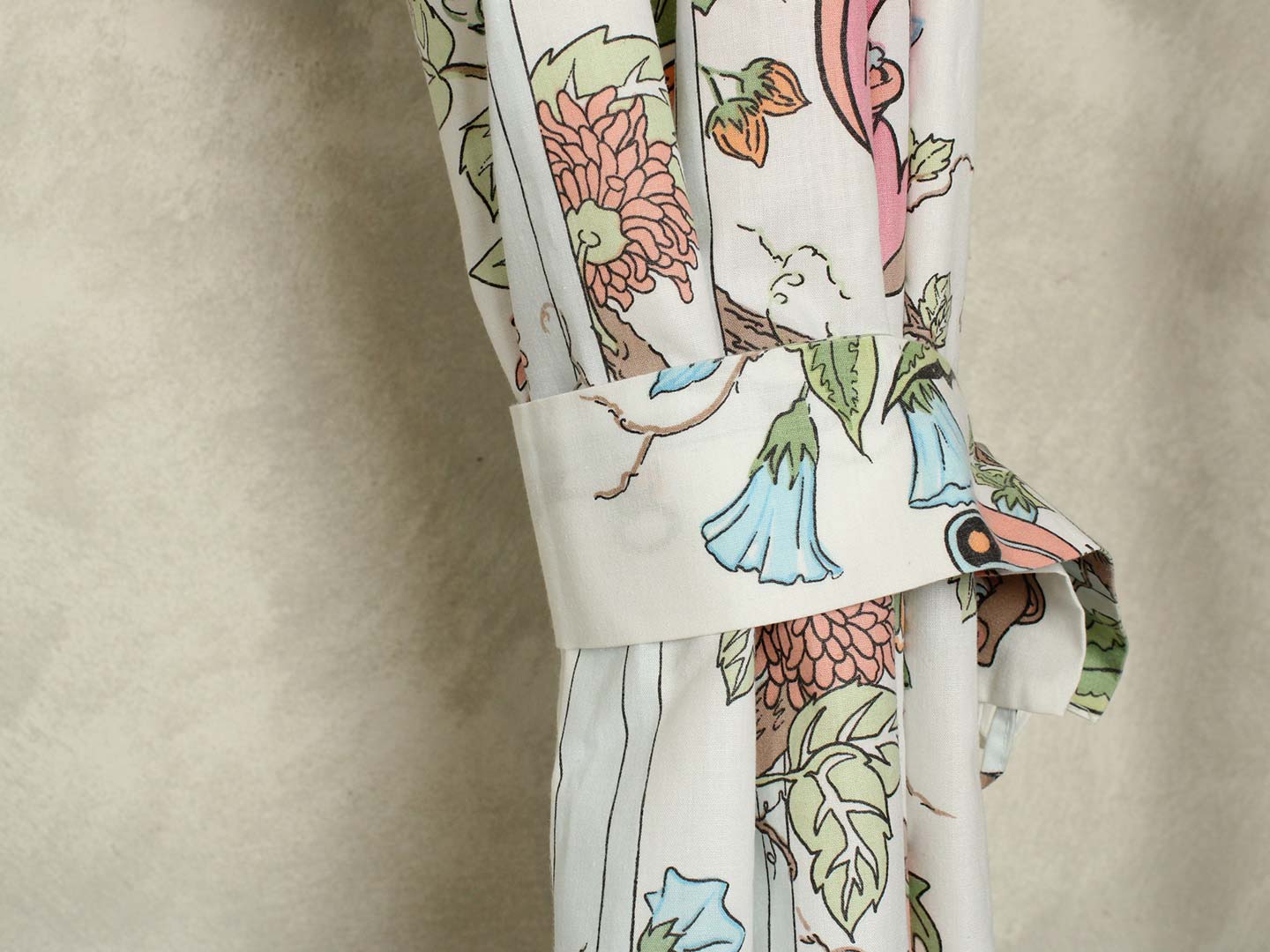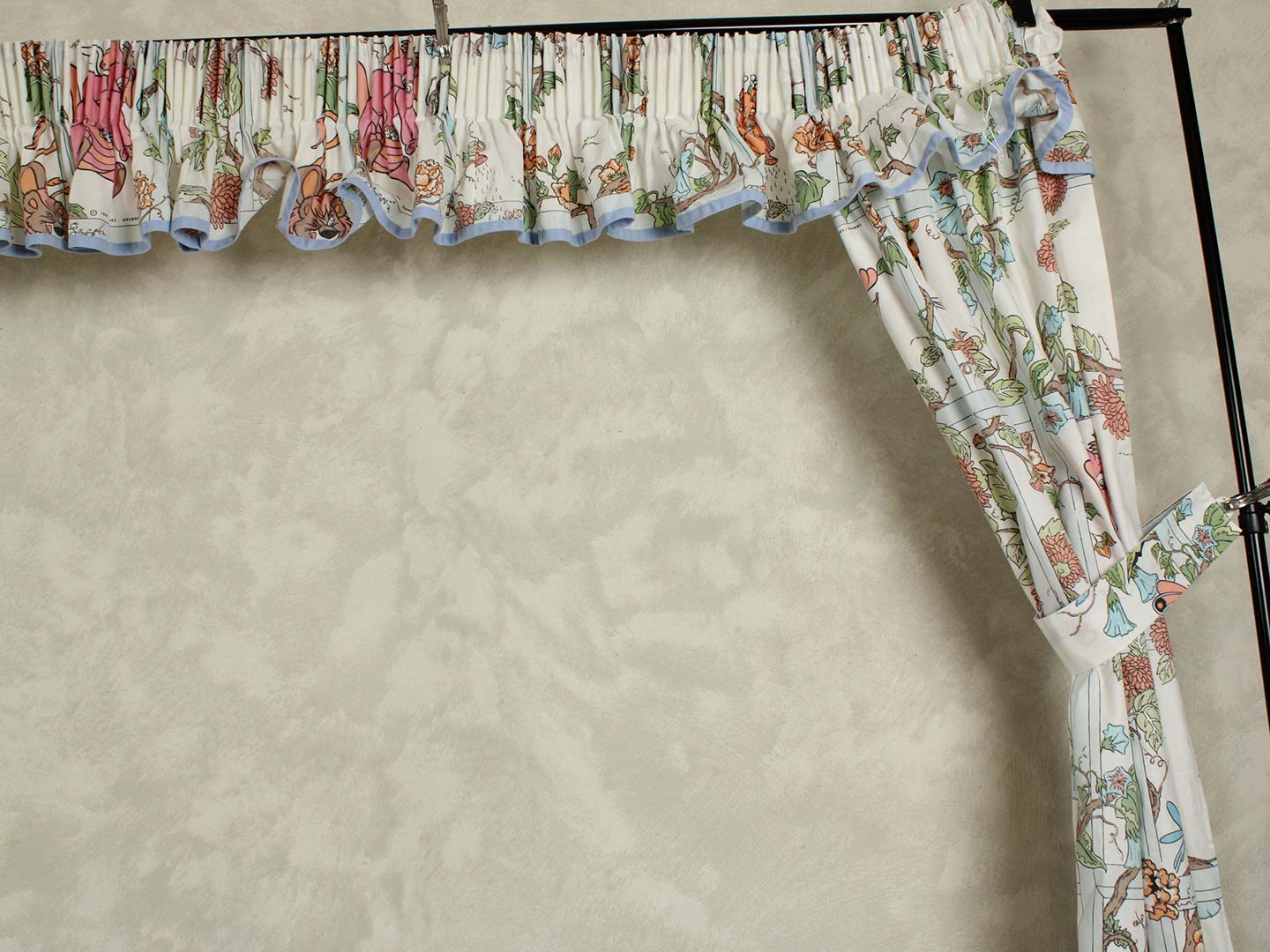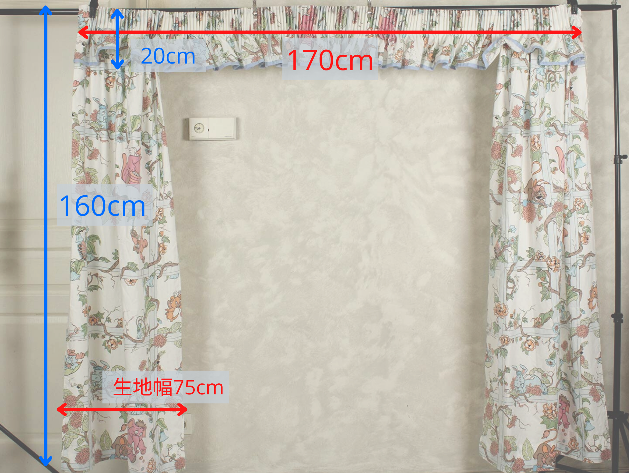 背中に羽根の生えたファンシーなアニマルたちの装飾カーテンです。閉めて遮光する為のものではありません。全体画像はカーテンをタッセルで縛らずに広げた状態です。