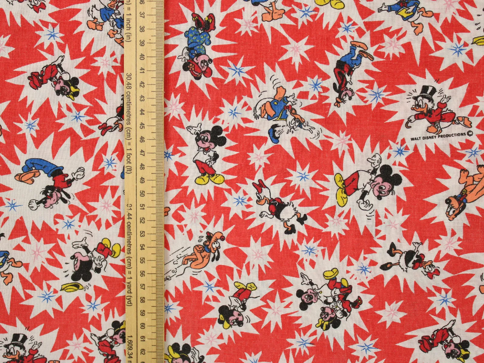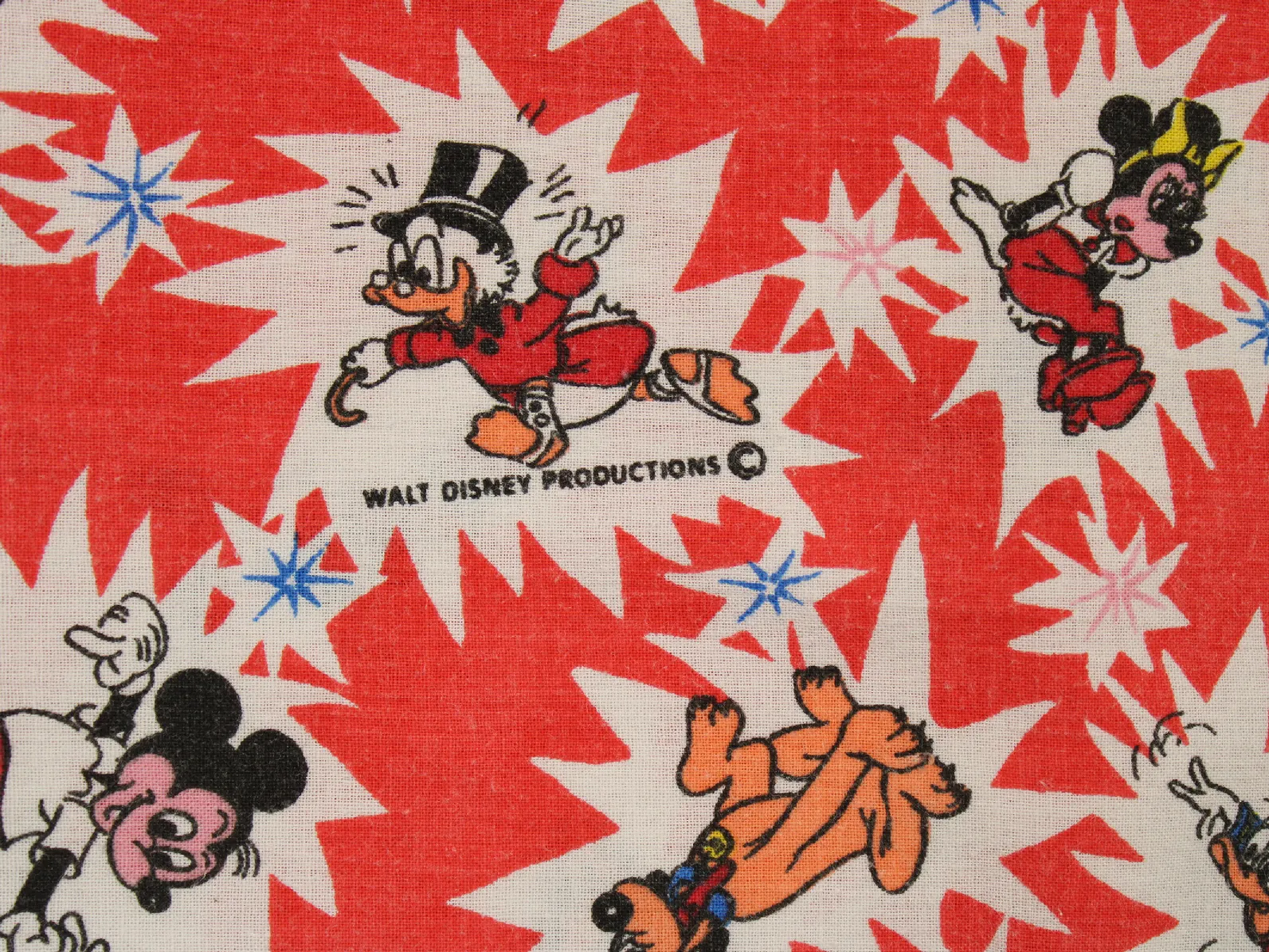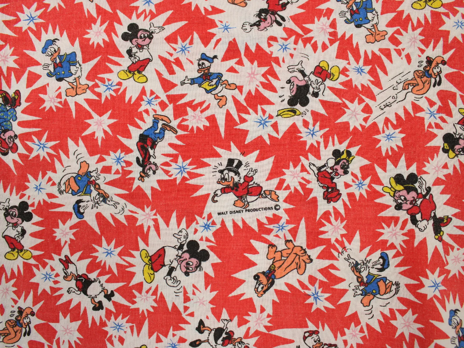 WALT DISNEY PRODUCTIONS、ミッキー&フレンズ、キャラクタービンテージシーツ。解体生地