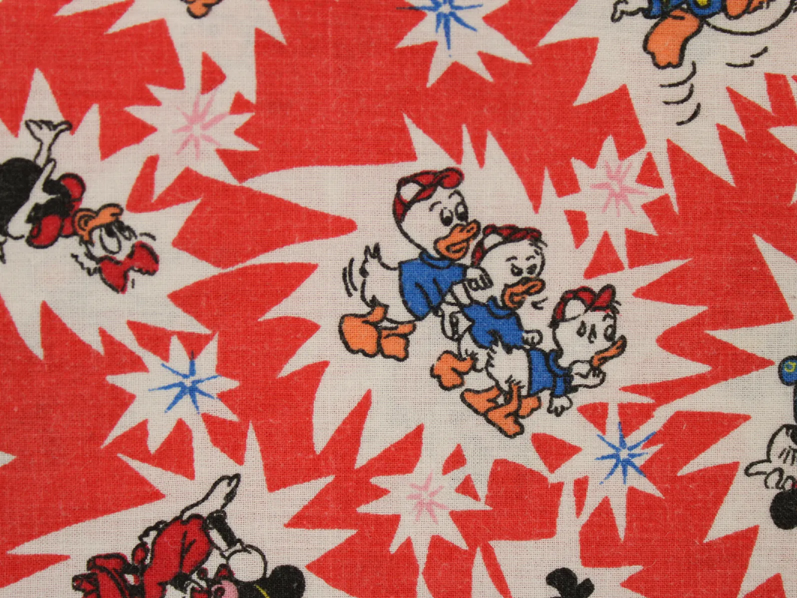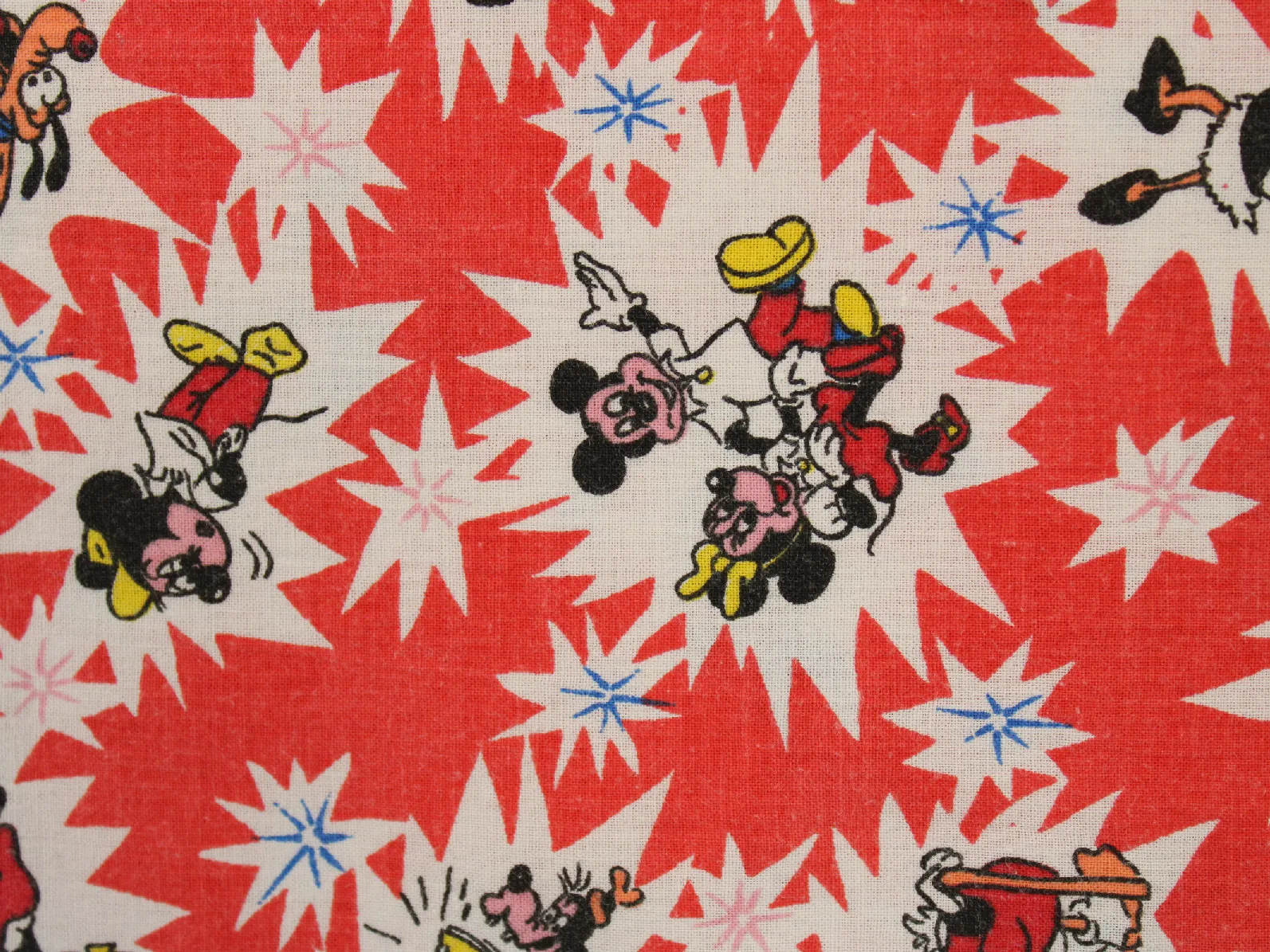 70*55 シーツ解体生地 ミッキー&フレンズ 赤 レトロ