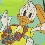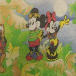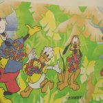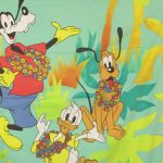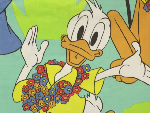 リゾート地のミッキーと仲間たち。大きな絵柄のお布団カバー&ピローカバーのベッドセットです。お布団カバー、ピローカバーともに裏面は葉っぱと太陽のような絵柄です。
