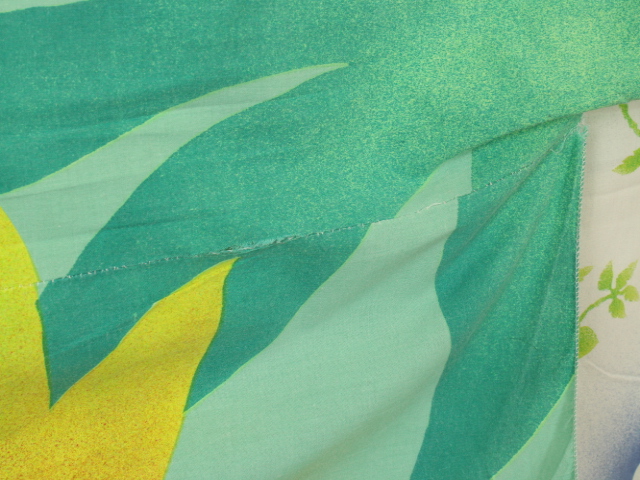 全体的な軽い色落ち、擦れ、しわ等の使用感があります。お布団カバーの下端でっぱり部分は補修されています。