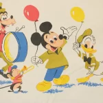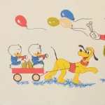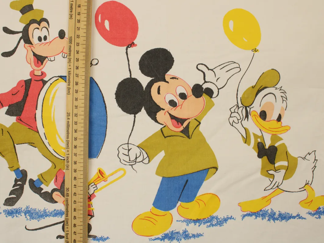 レトロカラーのミッキー&フレンズ。風船&パレード柄。中古シーツ解体生地です。