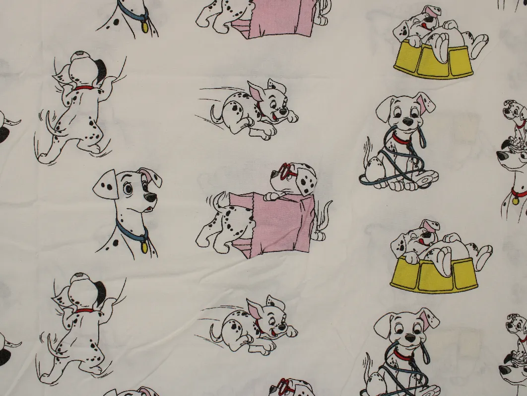 ディズニー、101匹わんちゃん、キャラクタービンテージシーツ。解体生地