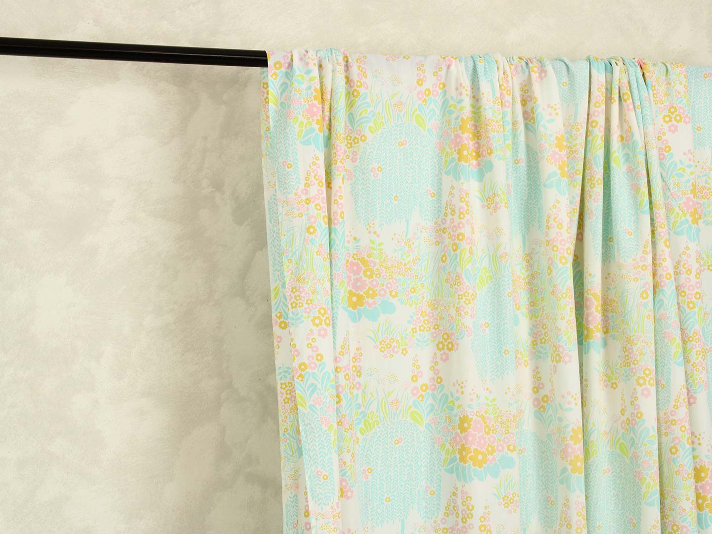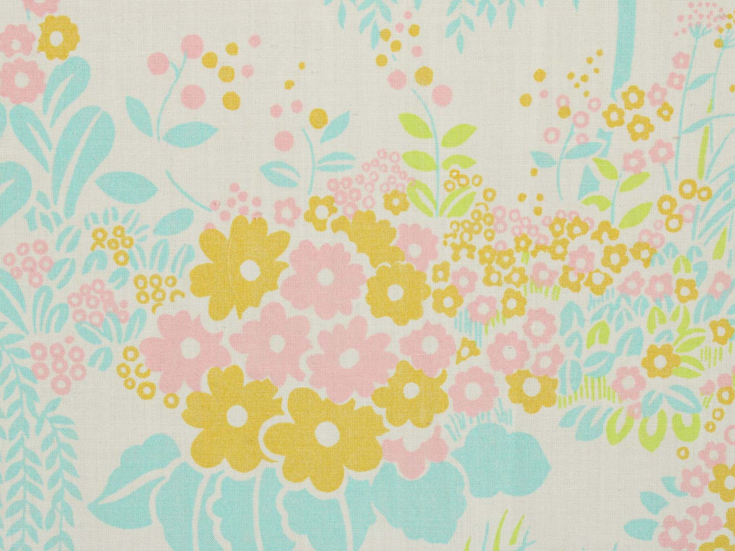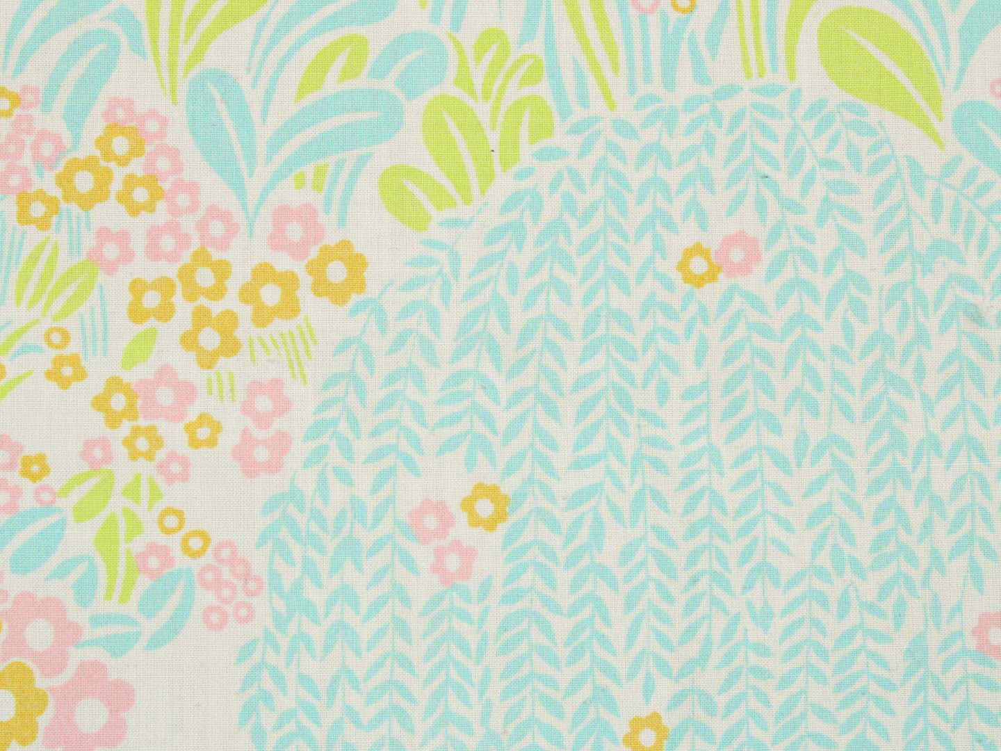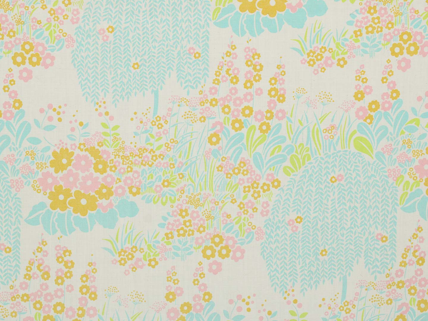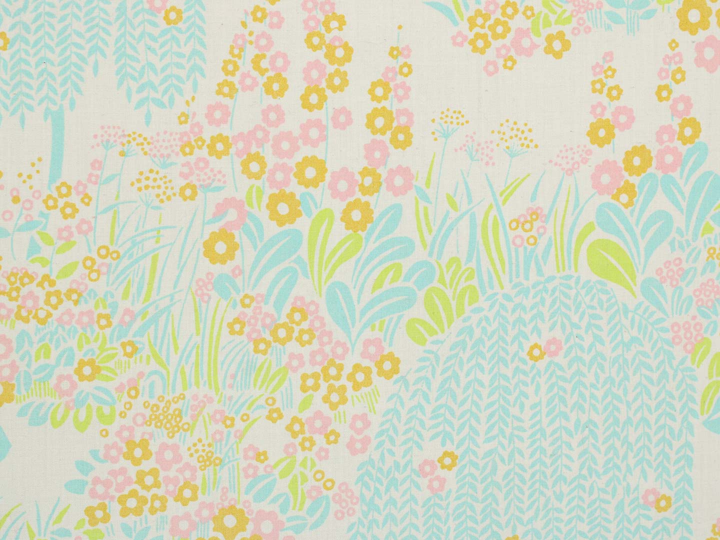 シダレヤナギのような木や小花や葉がリズミカルなデザイン。