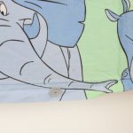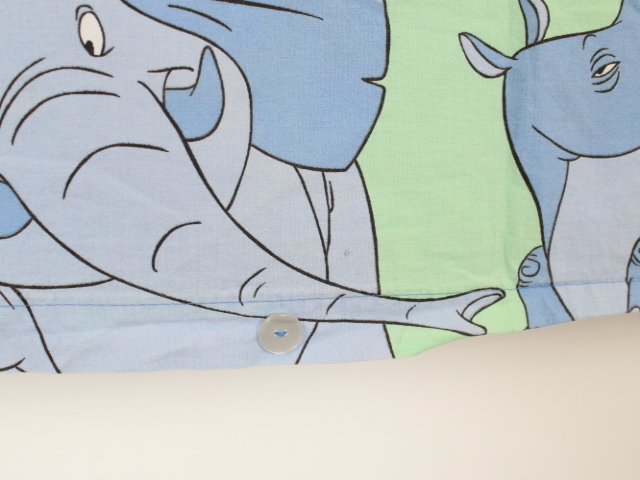 こどもシンバとナラ、グリーンのストライプ柄のキッズサイズお布団カバーです。愉快などうぶつ達も可愛らしいデザイン。片面はストライプ柄、もう片面はシンバとナラが一面にデザインされています。しっかりとしたコットン製の生地です。下部ボタン式。