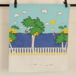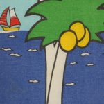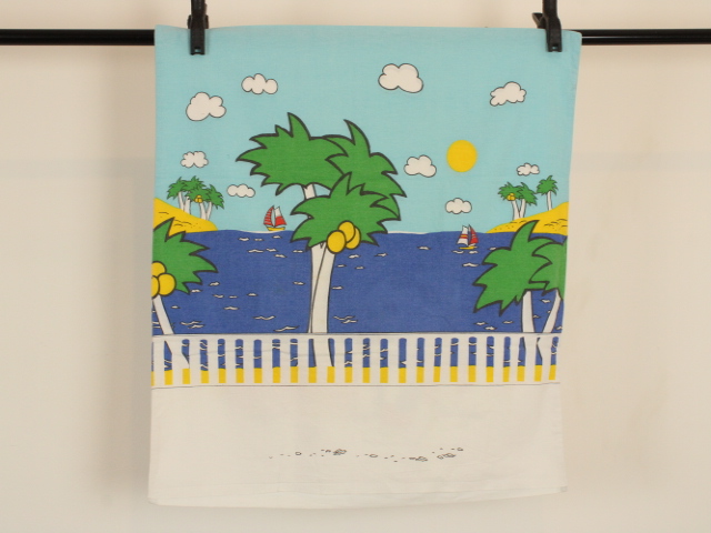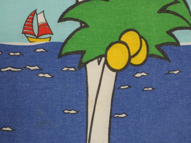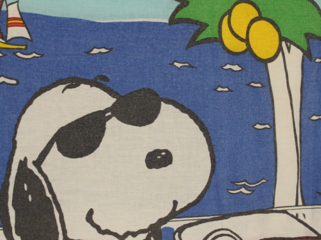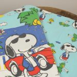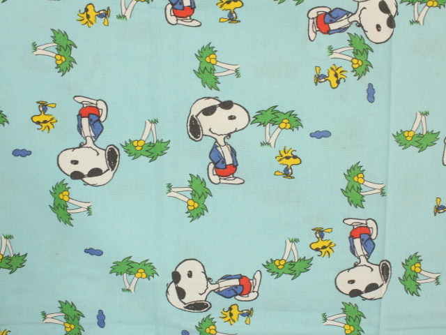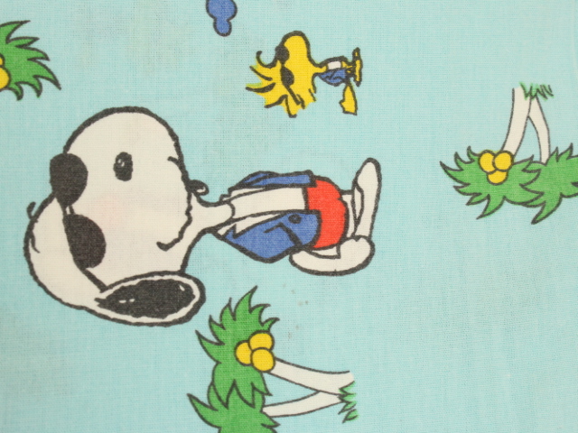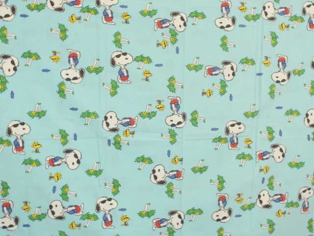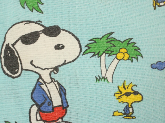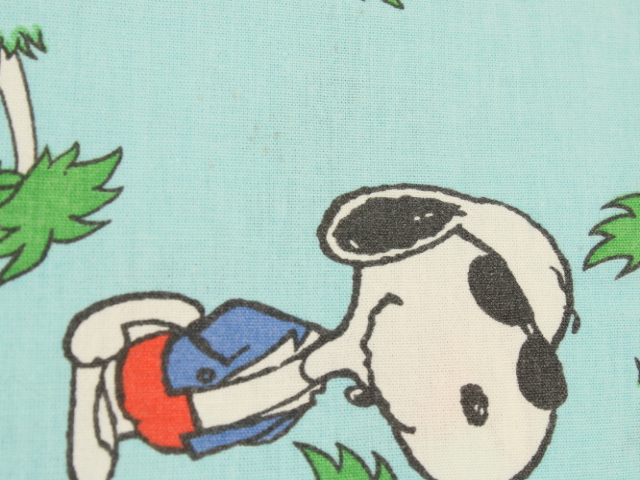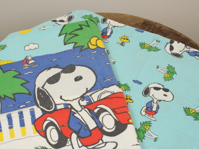 フランス版スヌーピー、やしの木柄のフラットシーツ&ピローカバーのベッドセットです。