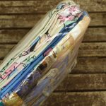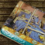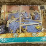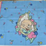フラットシーツは片面絵柄の1枚もの(アイボリー地)、ボックスシーツはマットレスに被せて使うタイプのシーツで、角にはゴムが入っています(水色地)。ピローカバーは裏表が違う絵柄です。