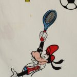 色々なスポーツをするグーフィーが可愛らしいお布団カバーです。お布団カバーの片面は大きな絵柄、もう片面は小さな絵柄のリバーシブルタイプです。レトロカラーのチェック模様が素敵なデザイン。