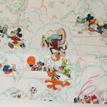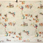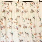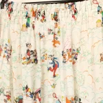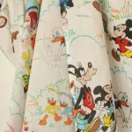 ミッキー、ミニー、ドナルド、デイジー、グーフィーと、ドナルドの甥っ子たち、チップとデールもいる、小さな絵柄の大きなカーテンです。