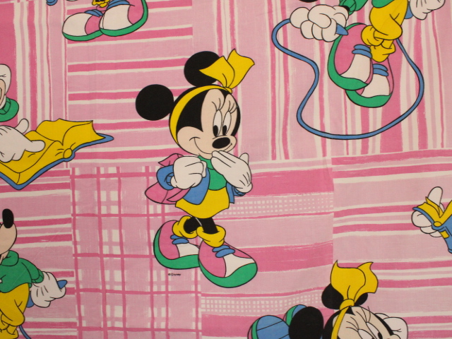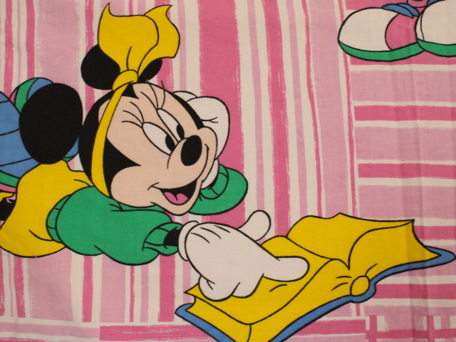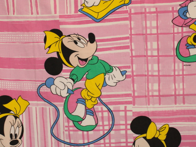 ディズニー、ミニー、キャラクタービンテージシーツ。80年代フランス。