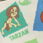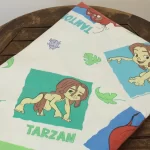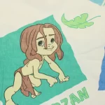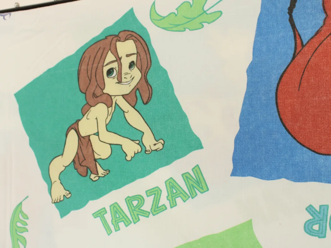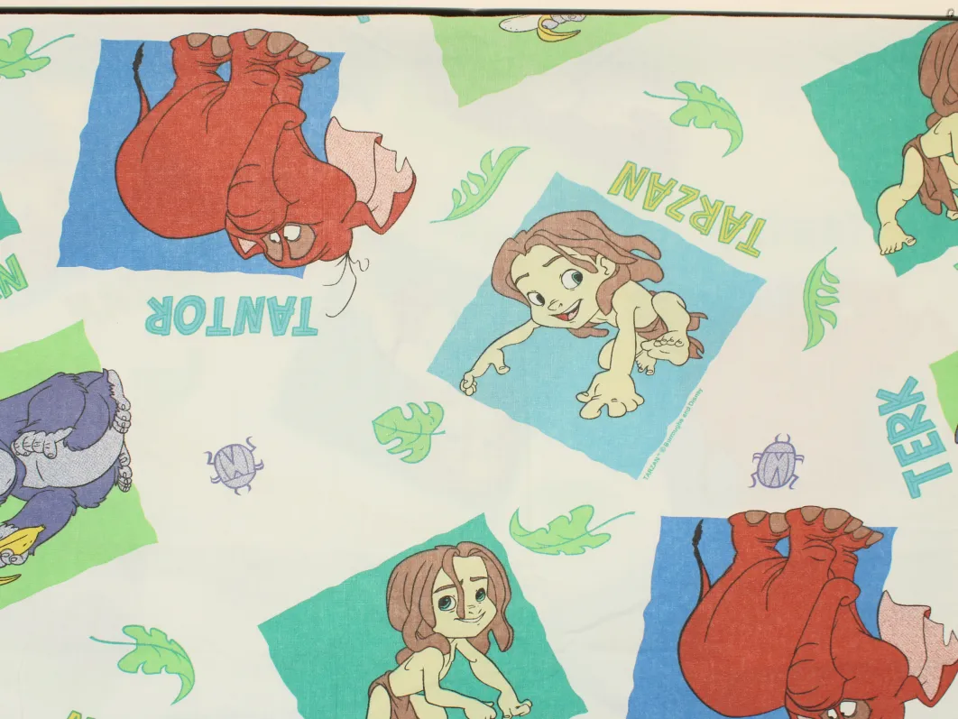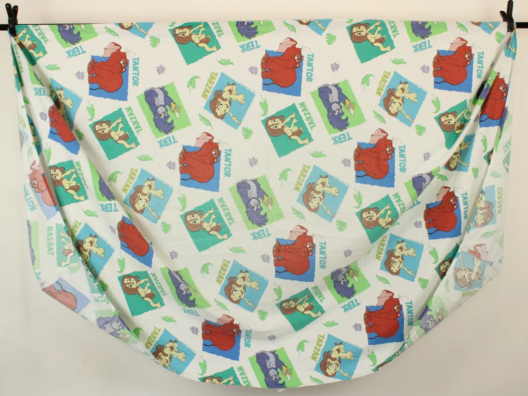 ディズニー、ターザン、キャラクタービンテージシーツ。90年代、フランス。