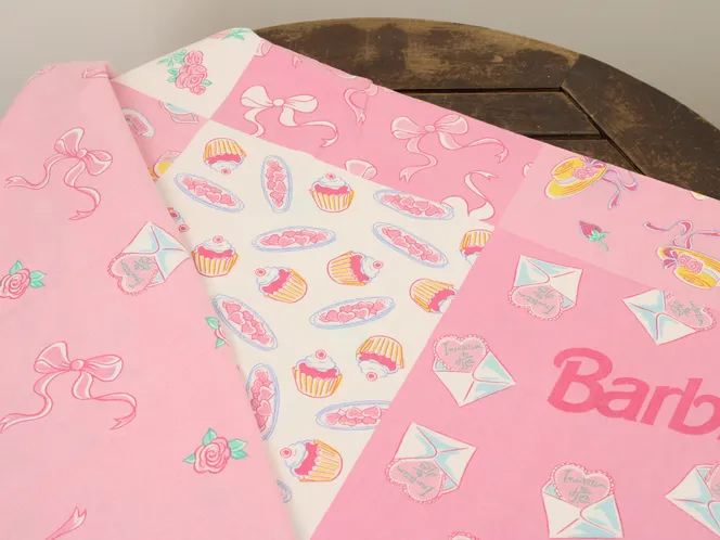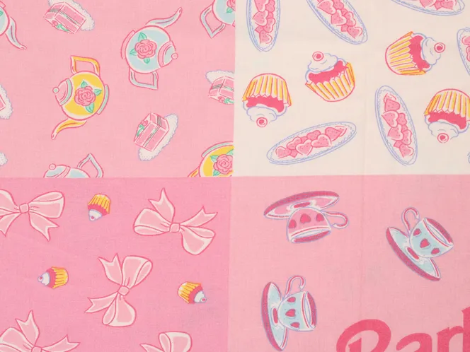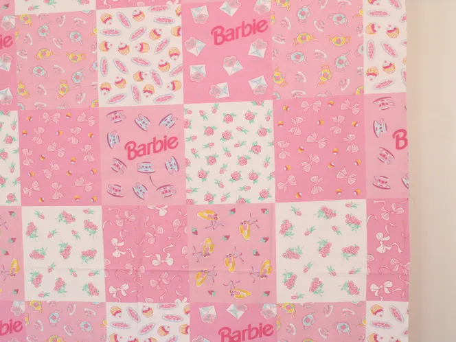 90年代バービー、お茶会パッチワーク柄のお布団カバーです。