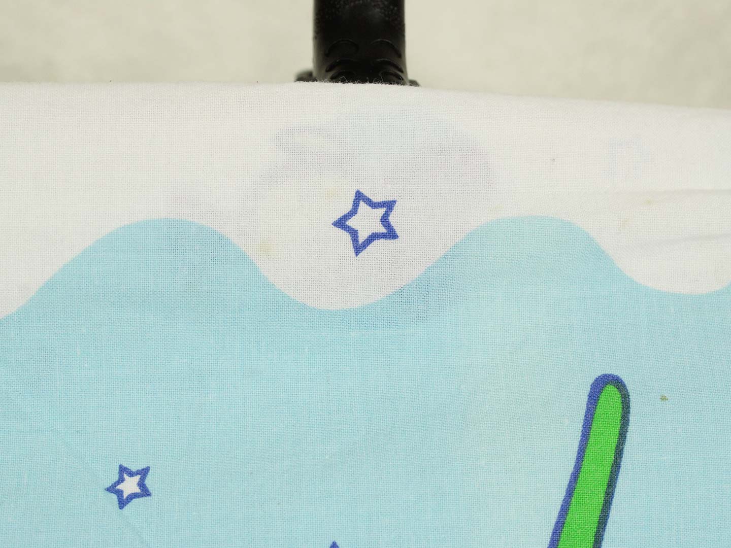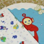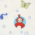 ヨーロッパ版テレタビーズのお布団カバーです。片面は大きな絵柄、もう片面は小さな絵柄のリバーシブルタイプ。白地に星とアニマル柄が可愛らしいデザインです。