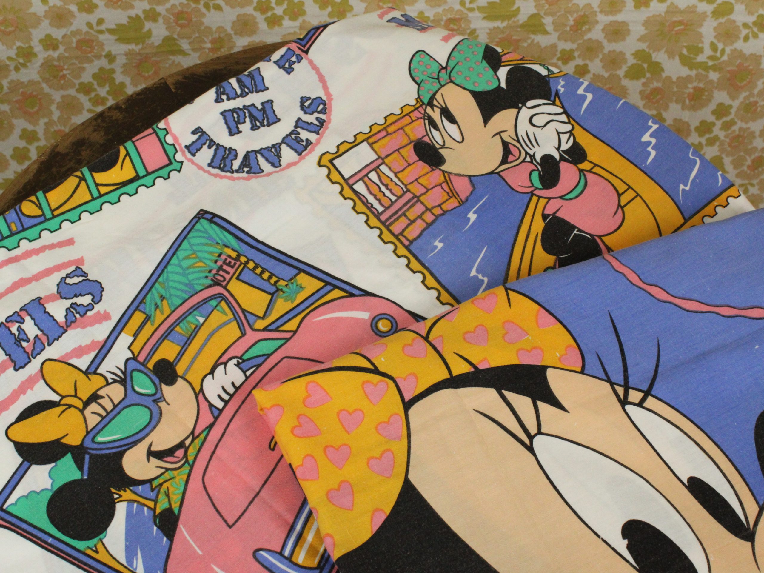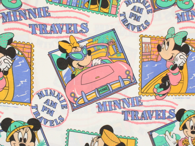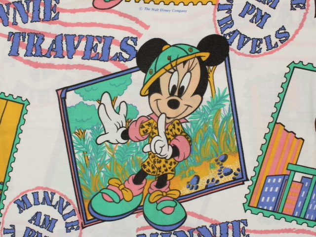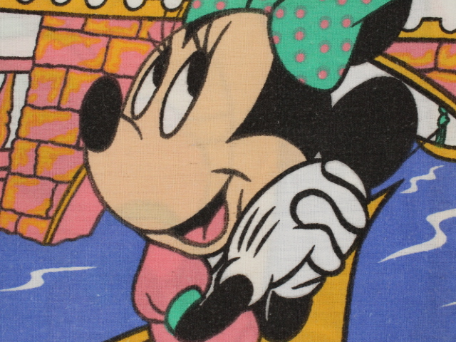 WALT DISNEY COMPANY、ミニー、キャラクタービンテージシーツ。80年代。