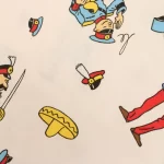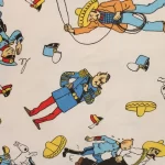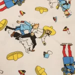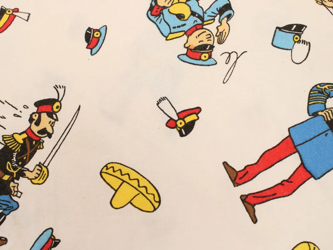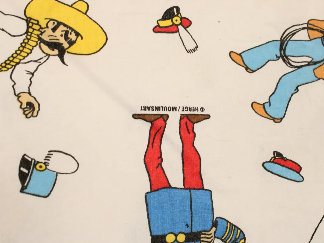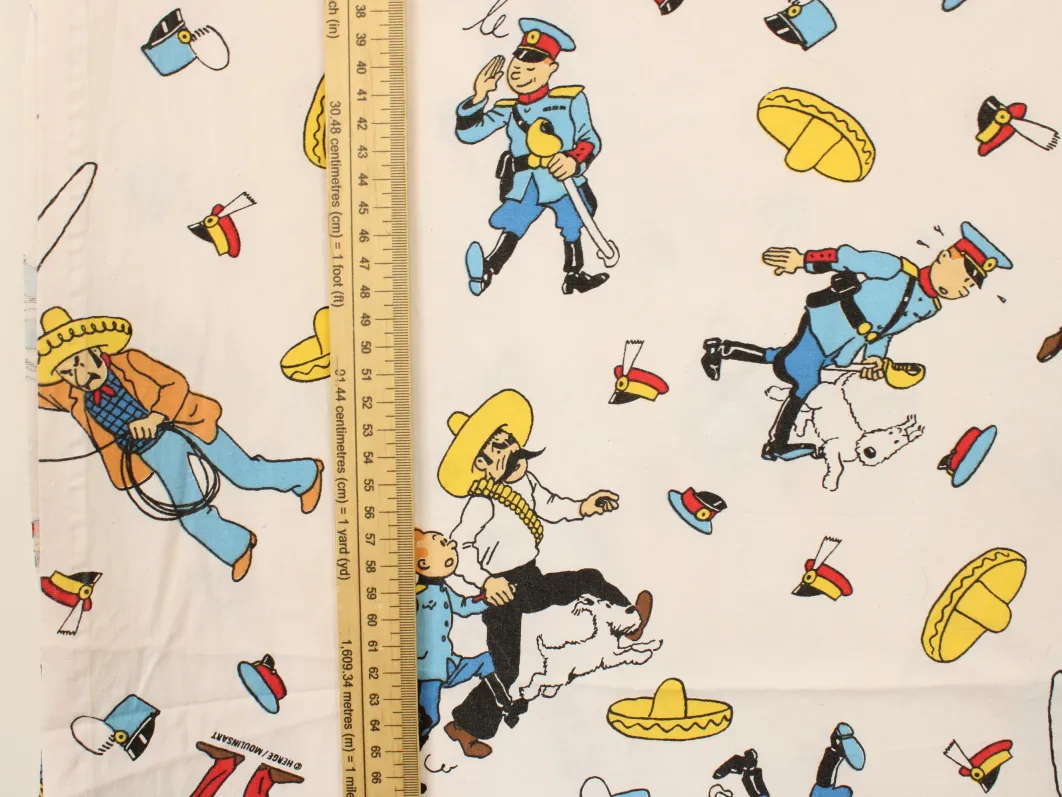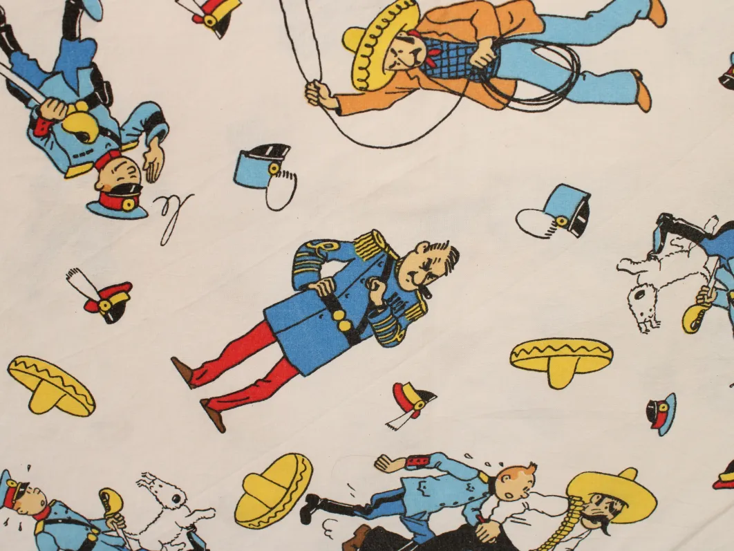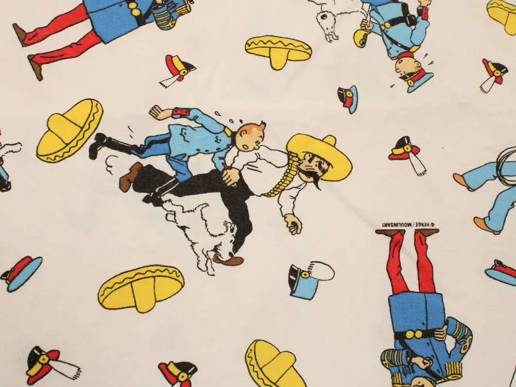 タンタンとピカロたち(Tintin et les Picaros)のキャラクターが描かれた、中古シーツ解体生地です。