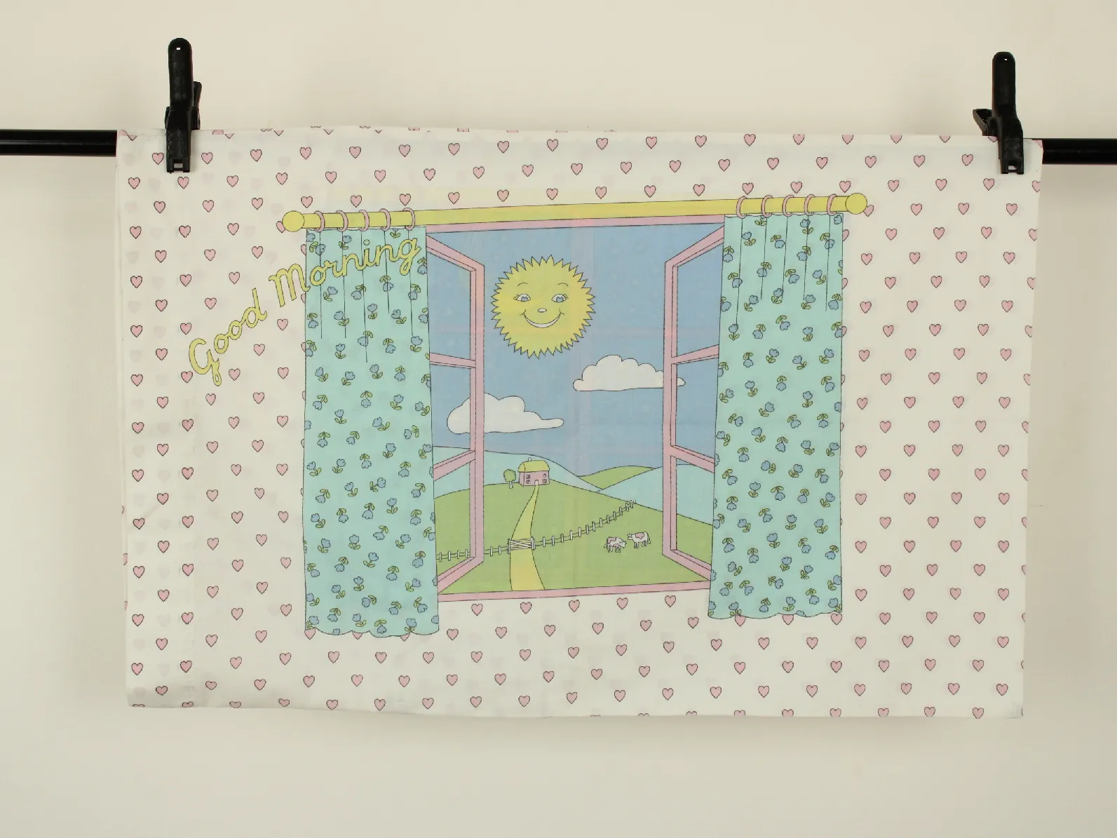 子供部屋の窓柄のピローカバーです。