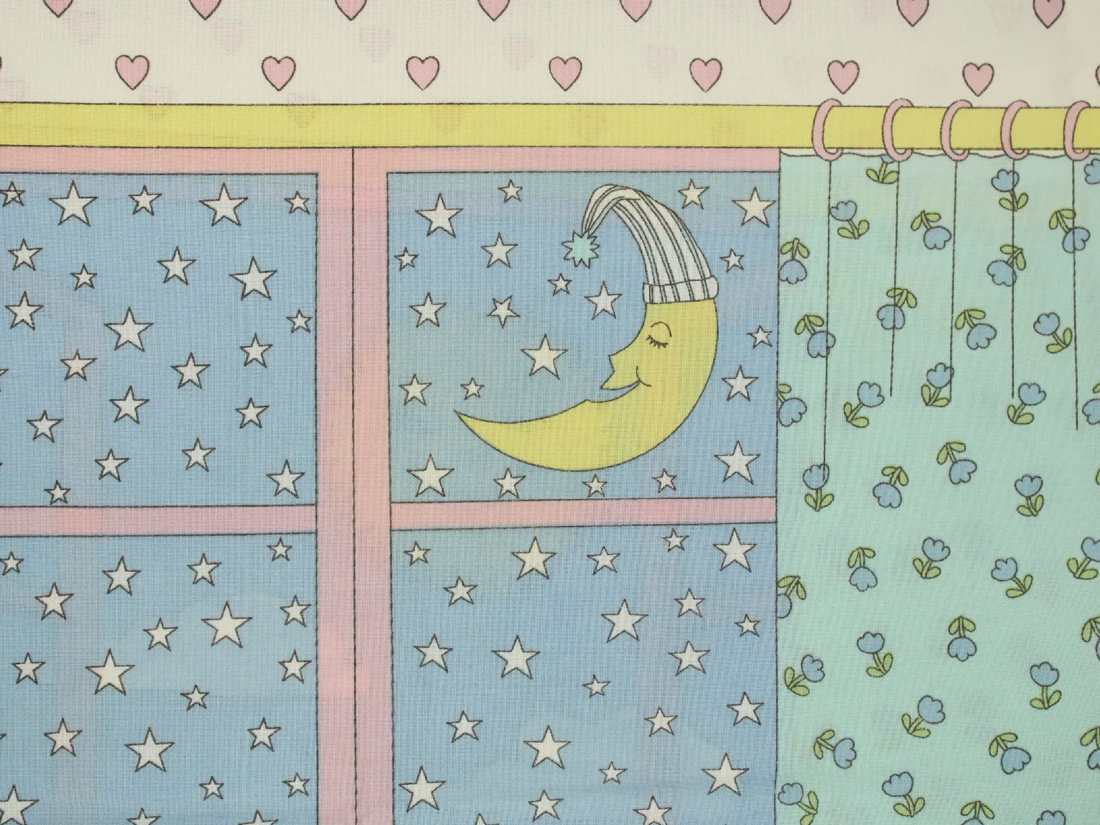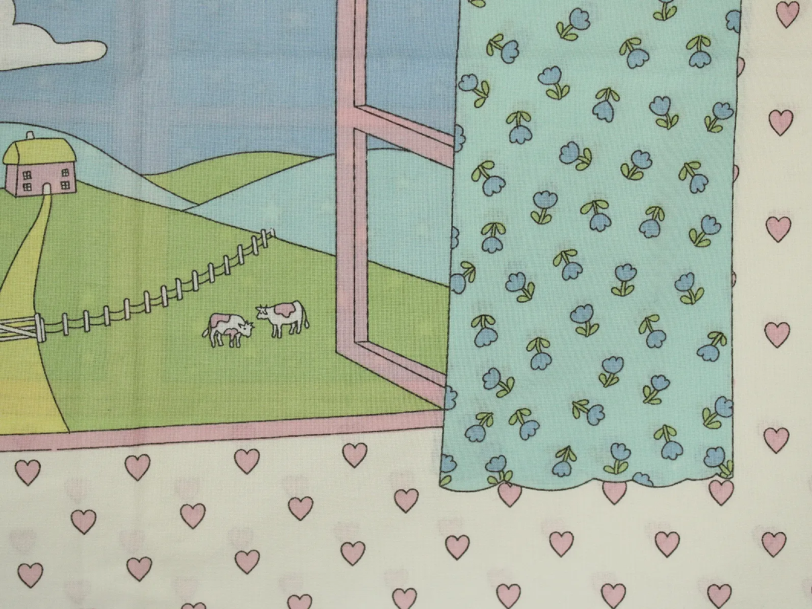 小さなハートや花模様のカーテンがファンシーでかわいいデザイン。
