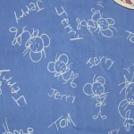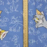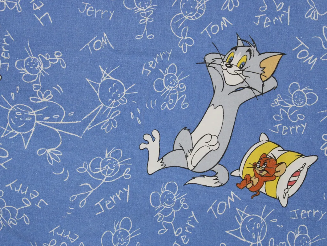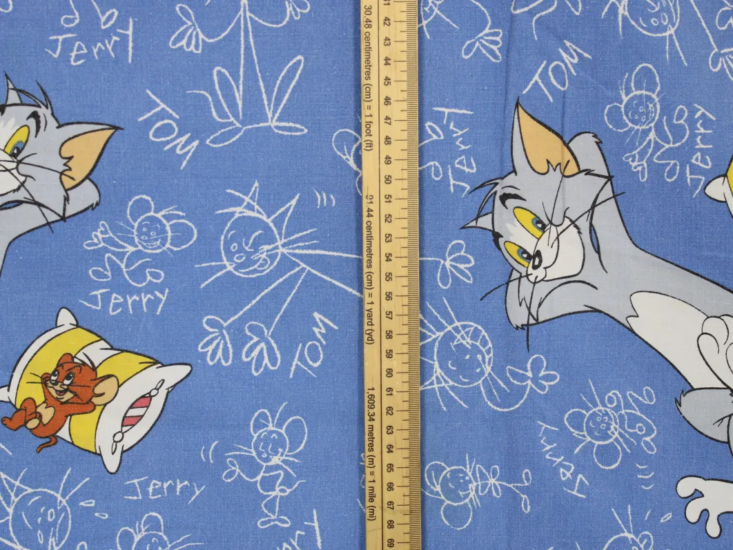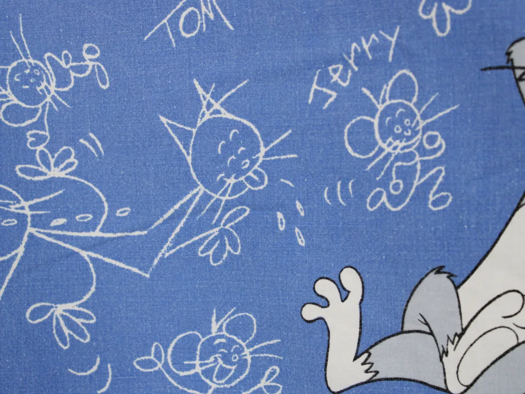 125*85 シーツ解体生地 トム&ジェリー 落書き 青