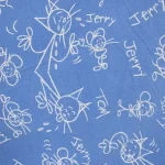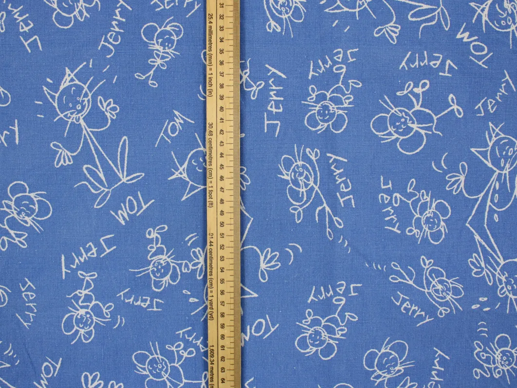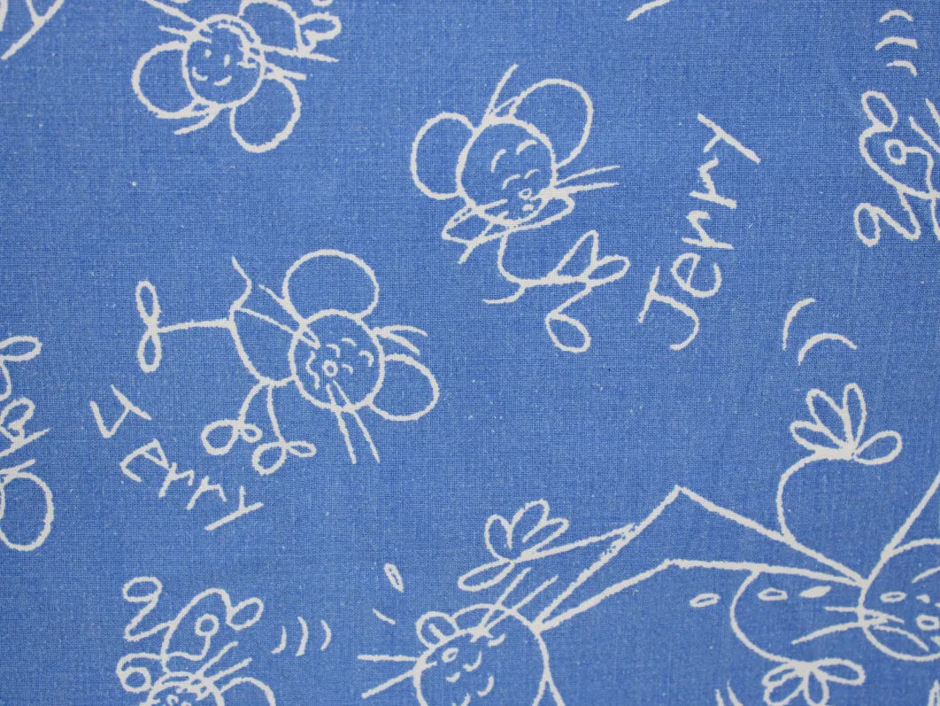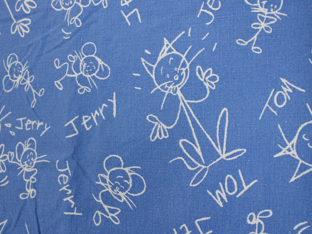125*85 シーツ解体生地 トム&ジェリー 落書き 青 イラスト
