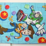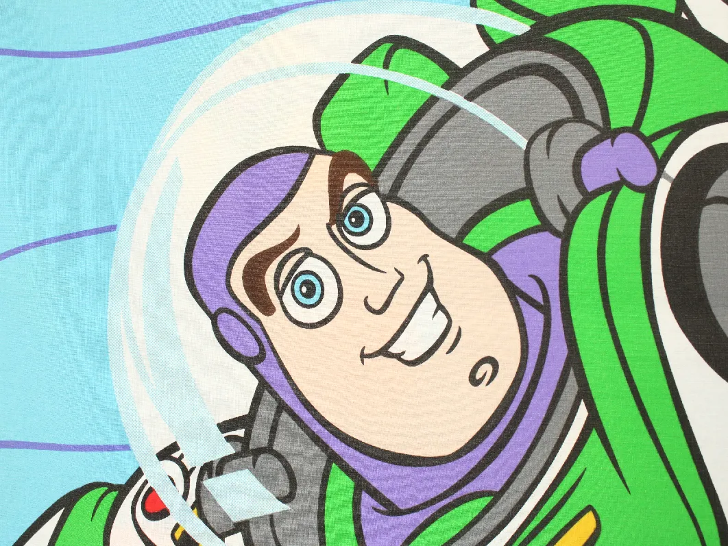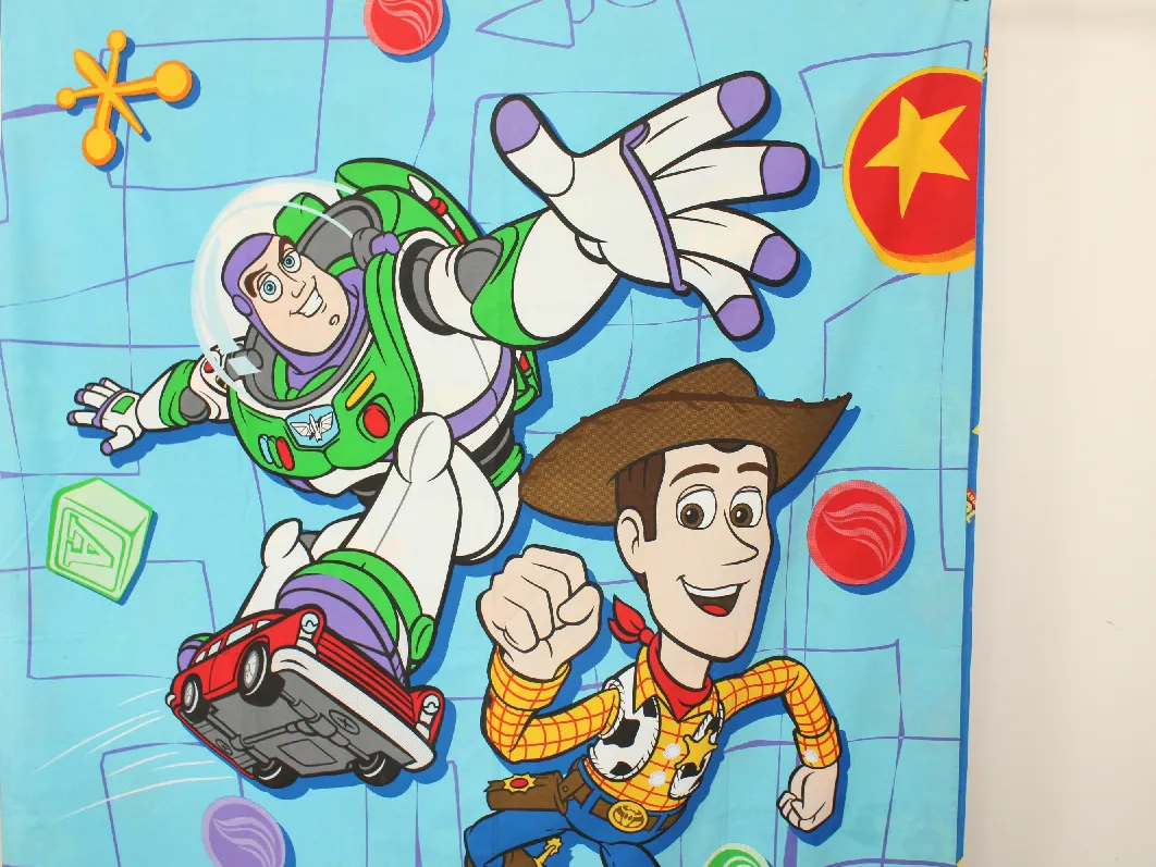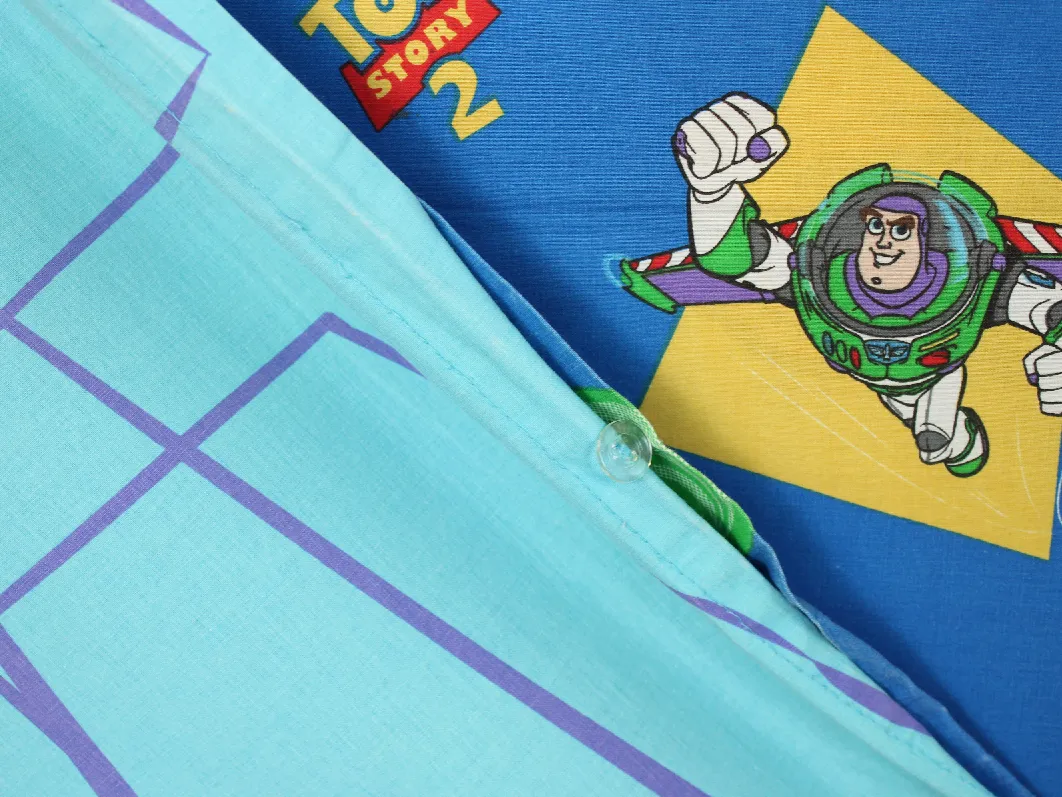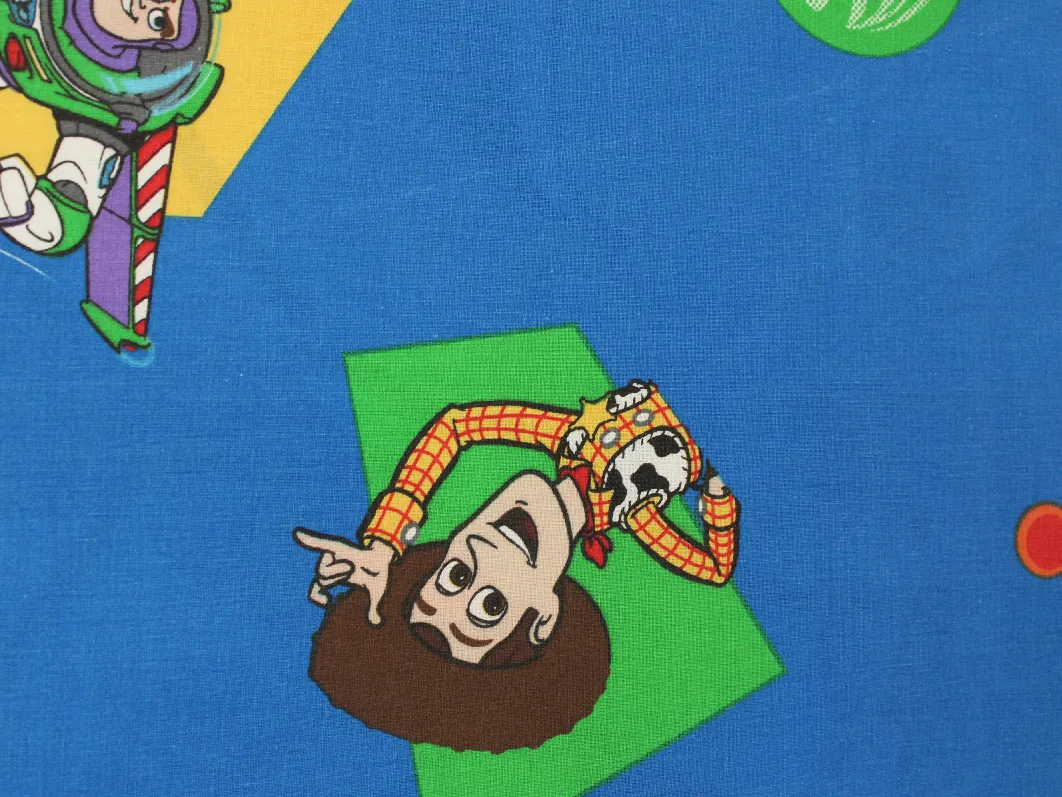 青地にトイ・ストーリー2のキャラクター達がデザインされたお布団カバーです。
