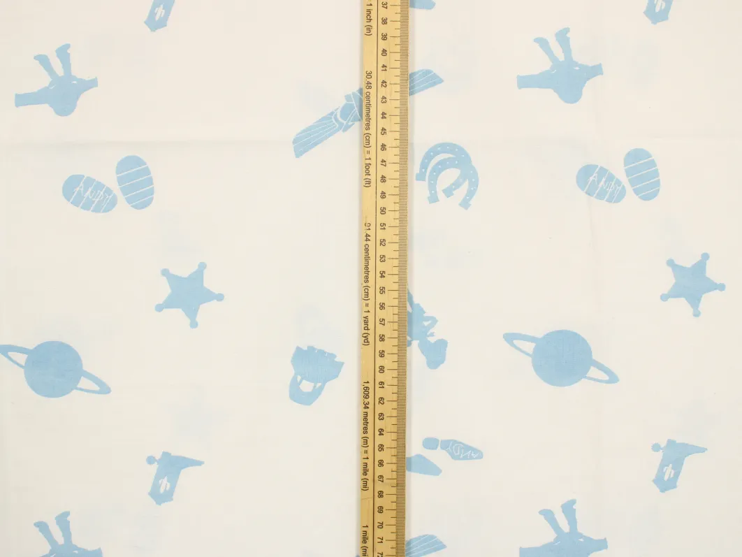 白地に水色のシルエット柄。
