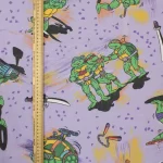 フランス版タートルズ、紫地に細かな絵柄のキャラクターや小道具がデザインされた人気柄。