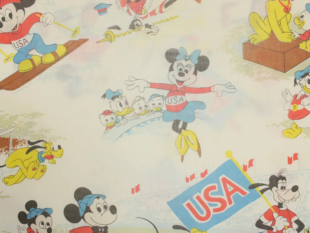 ミッキー、ミニー、グーフィー、プルート、ドナルド&甥っ子たちもいる、オリンピック柄のボックスシーツです。