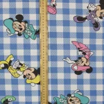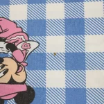 125*85 シーツ解体生地 ミニー 花帽子 水色ギンガム