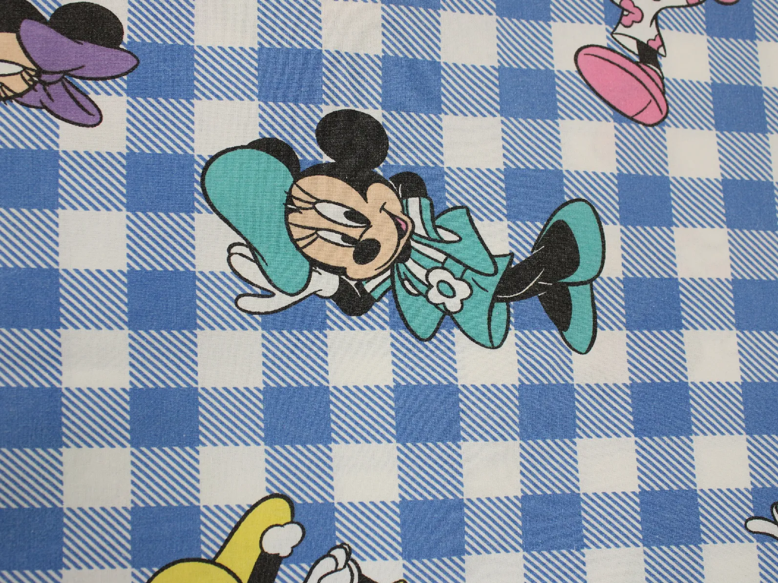 ディズニー、ミニー、キャラクタービンテージシーツ。解体生地